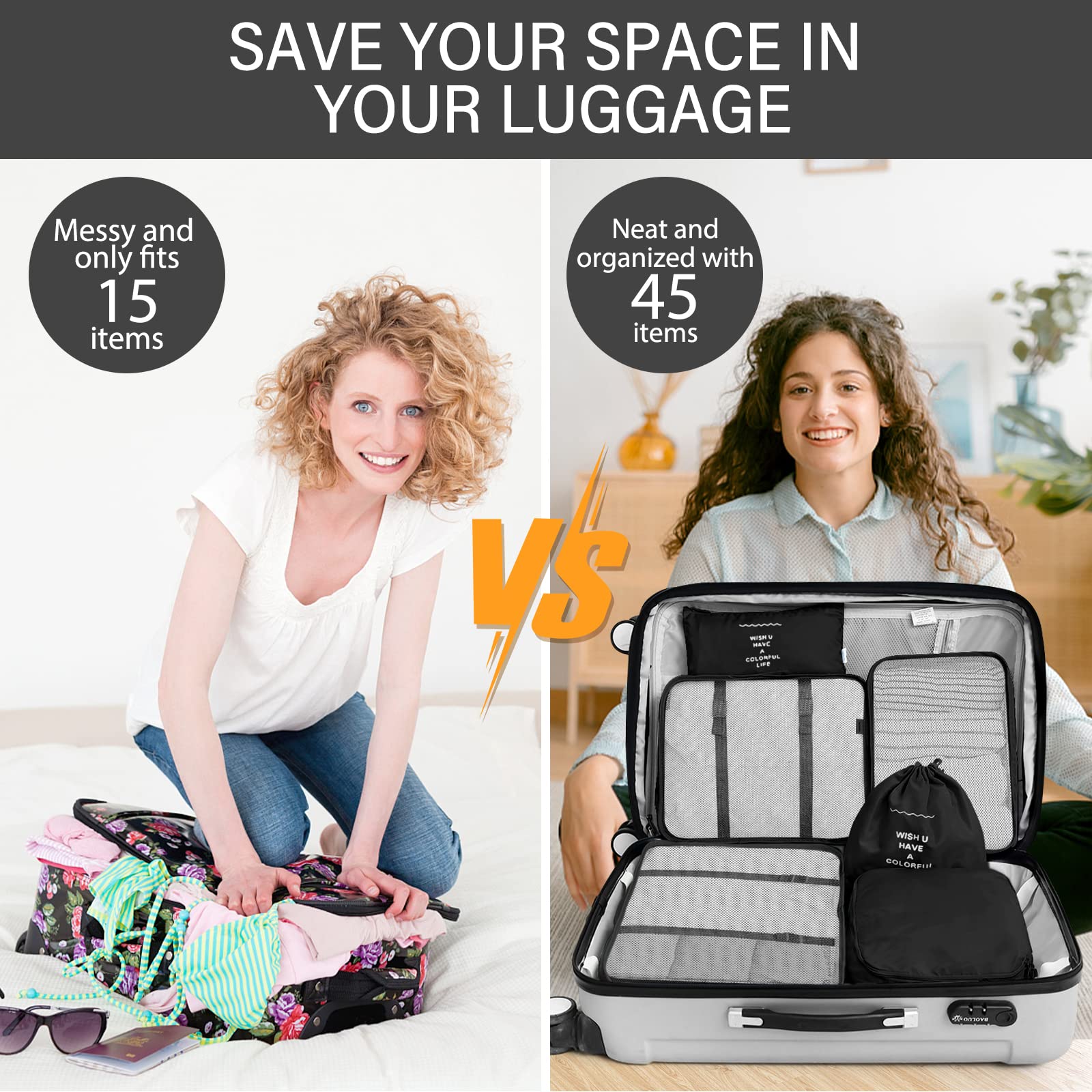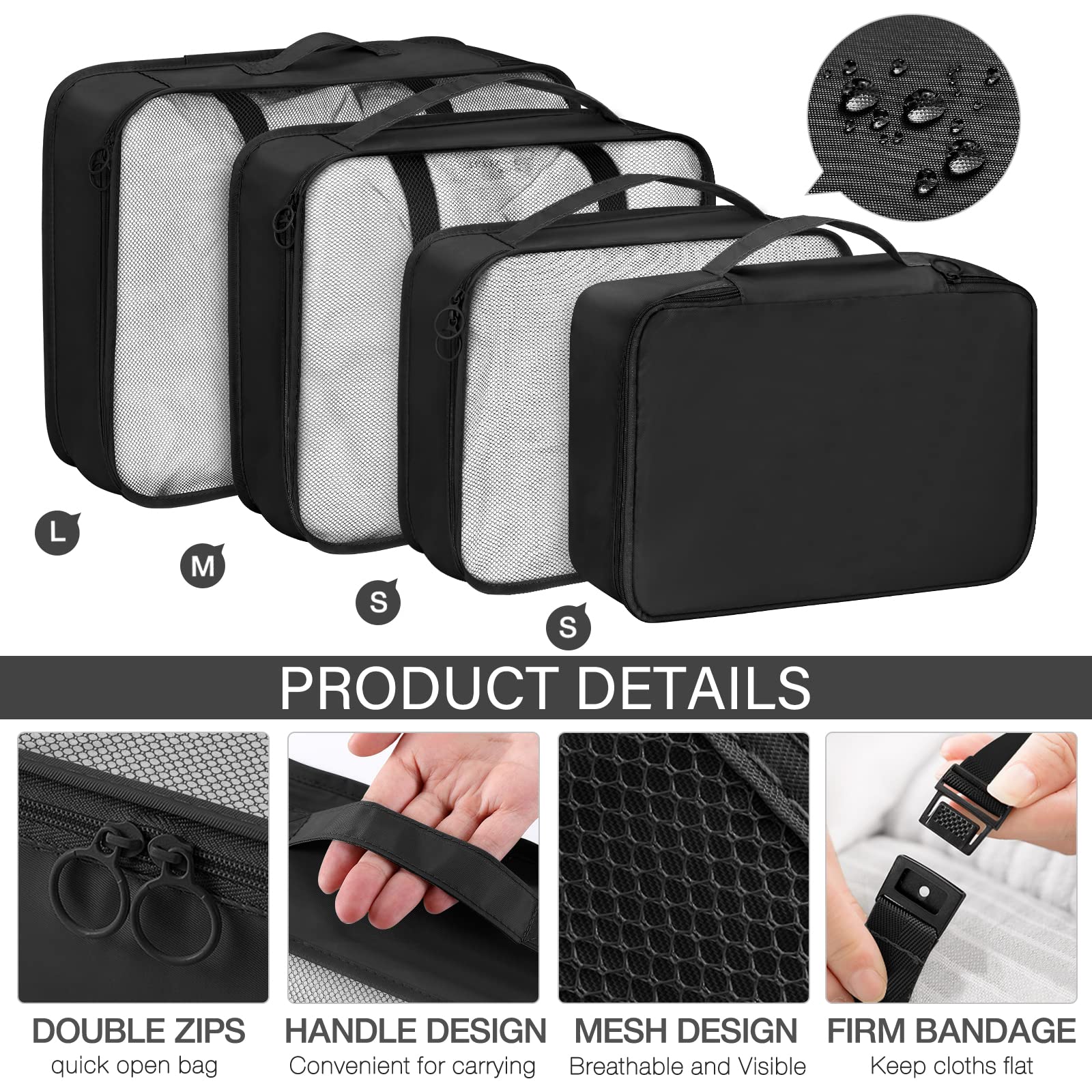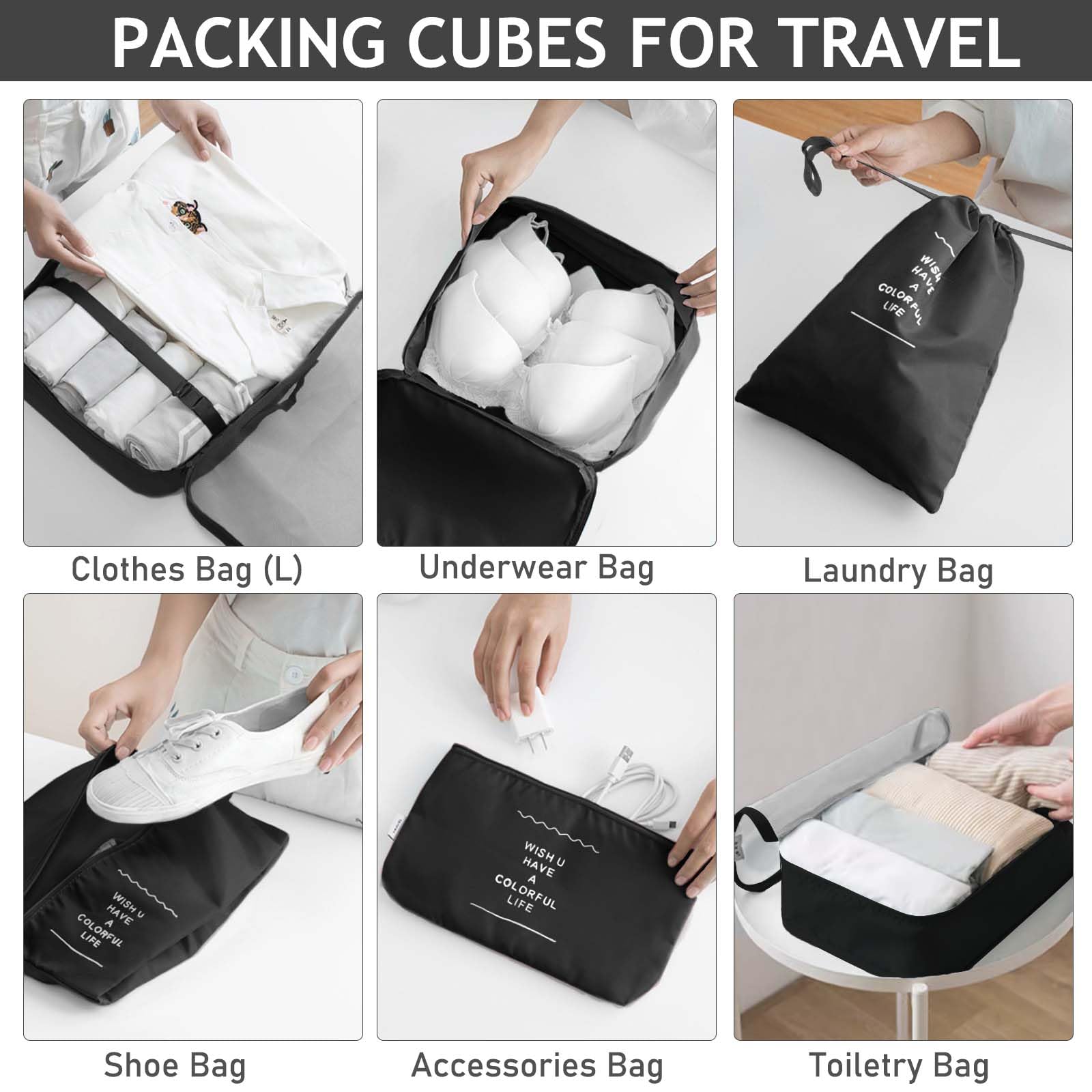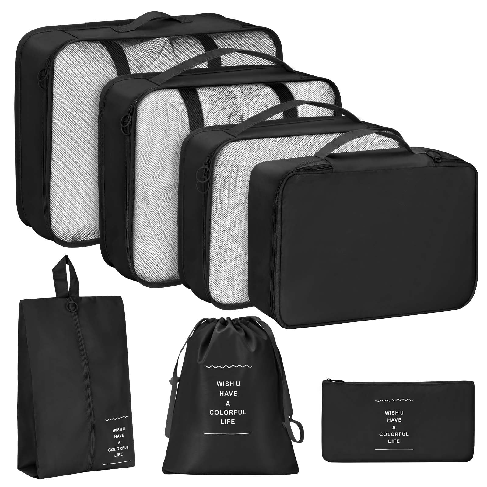 7 Set Packing Cubes for Travel, Travel Luggage Packing Organizers, Travel Accessories Large Toiletries Bag for Clothes Shoes Cosmetics Toiletries (Black)