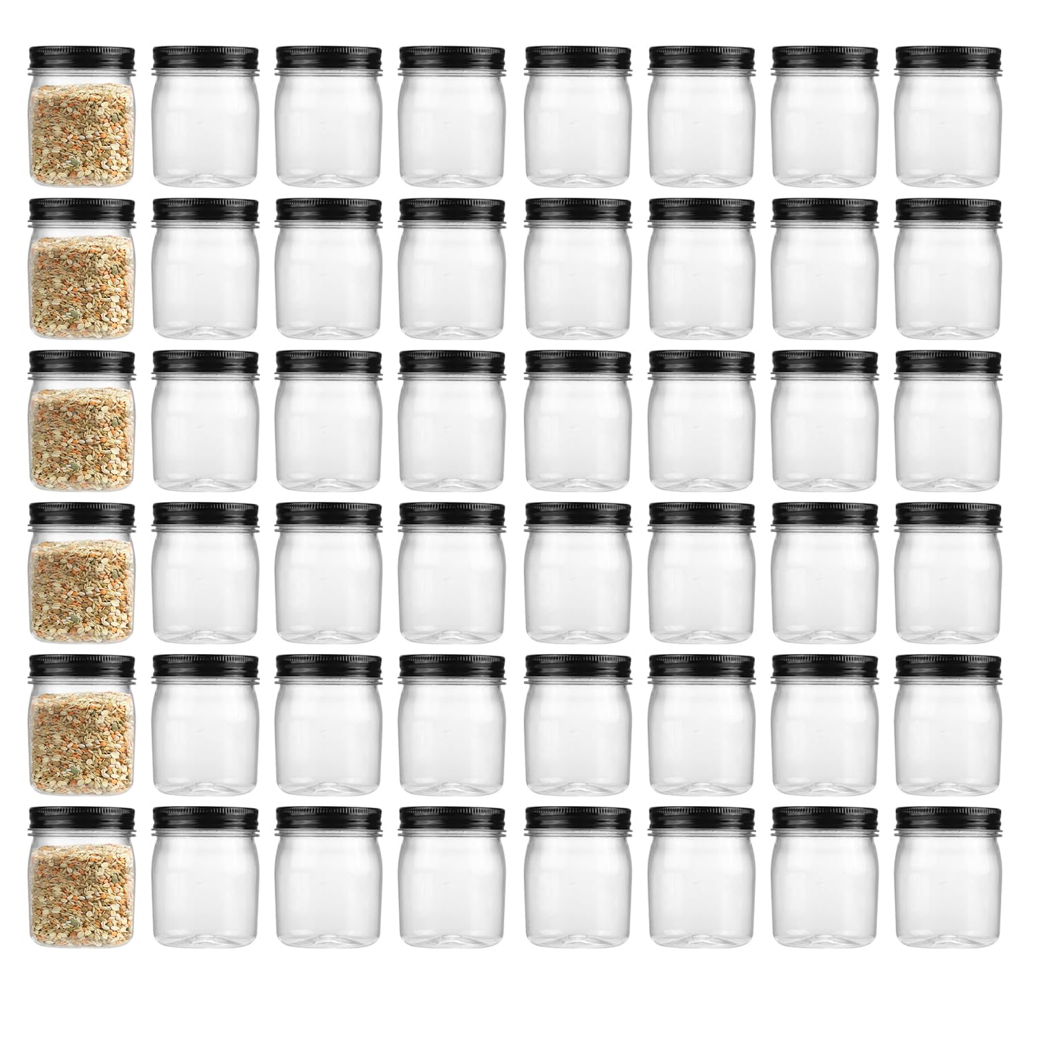Clear Plastic Mason Jars With Screw On Lid, 48 Pack