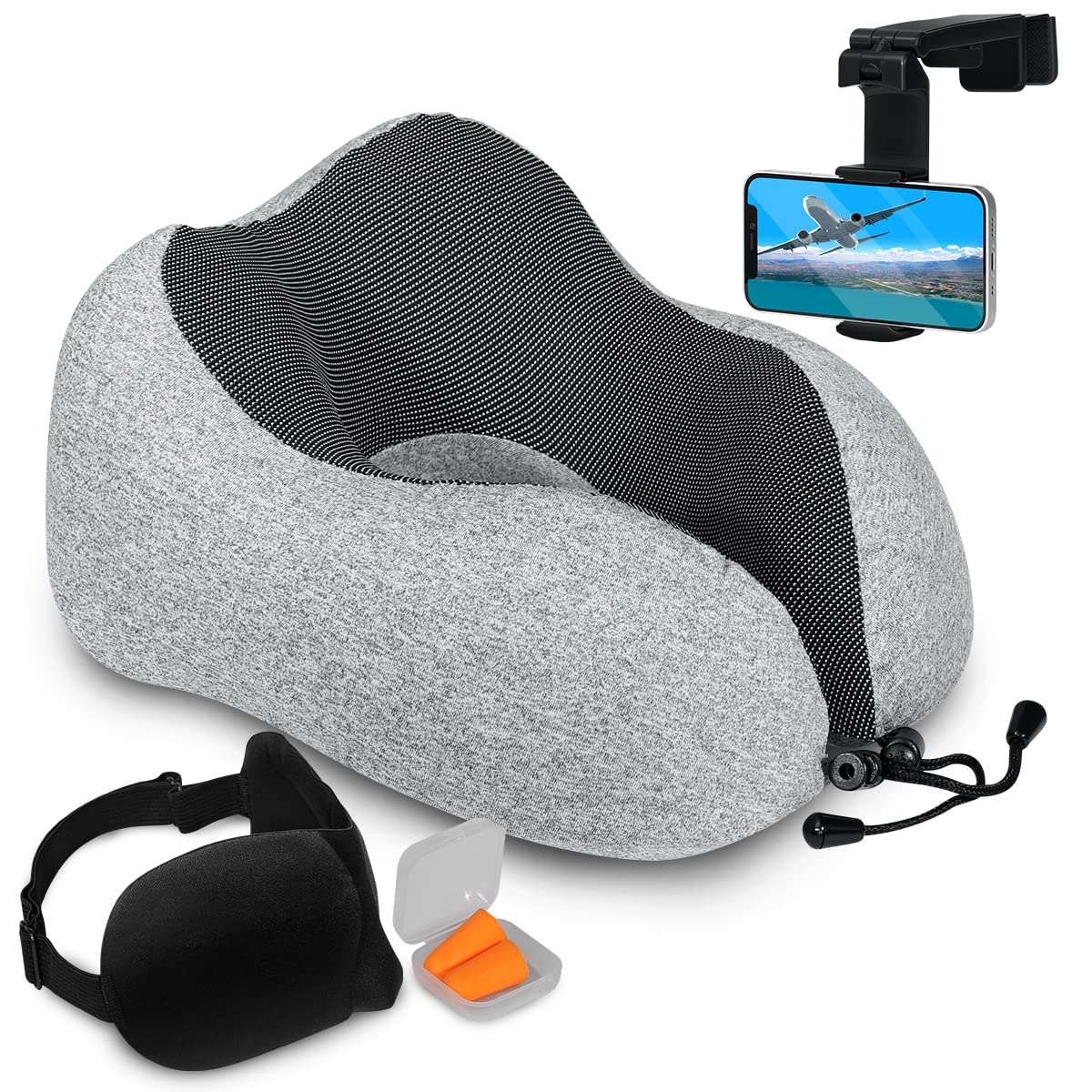 Pure Memory Foam Travel Pillow, 4 Pc Travel Kit, 2 Pack