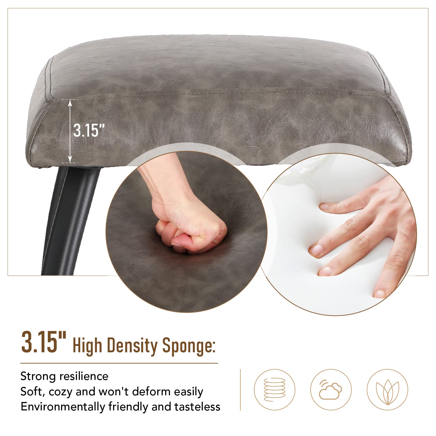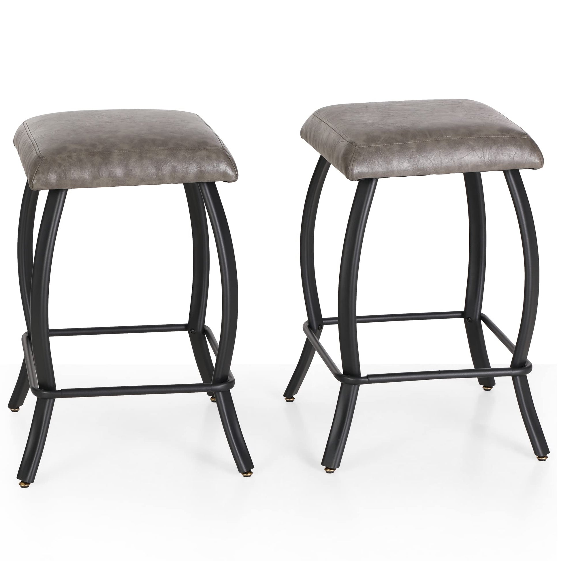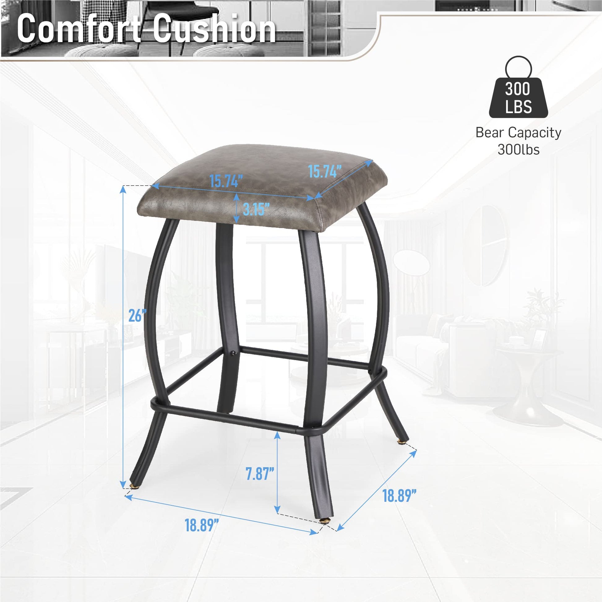 ALPHA HOME 26" Bar Stools Counter Height Bar Stools with Footrest PU Leather Backless Kitchen Dining Cafe Chair with Thick Cushion & Sturdy Chromed Metal Steel Frame Base for Indoor,Grey,2PCS