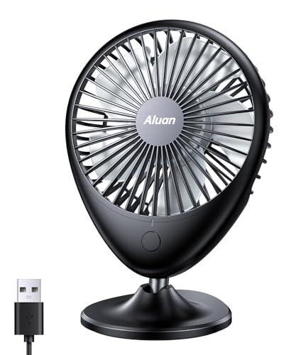 Aluan Desk Fan Small Quiet USB Fan Portable for Travel 3 Speeds Powerful Desktop Fan 75°Head Rotation Table Fan Personal Mini Fan for Office Home Bedroom Cruise, 4 Inch Black