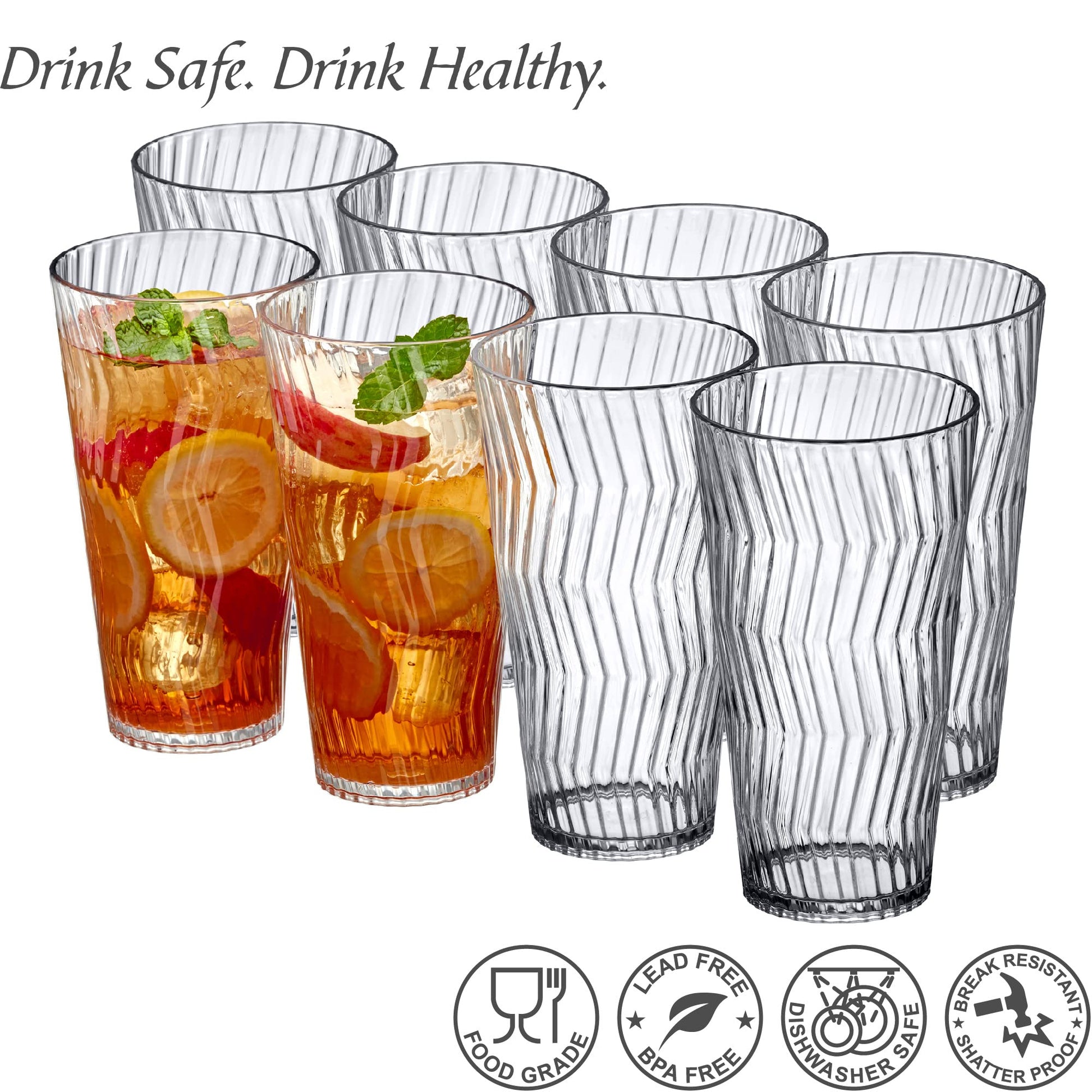 Amazing Abby - Stream - 24-Ounce Plastic Tumblers (Set of 8), Plastic Drinking Glasses, All-Clear High-Balls, Reusable Plastic Cups, Stackable, BPA-Free, Shatter-Proof, Dishwasher-Safe