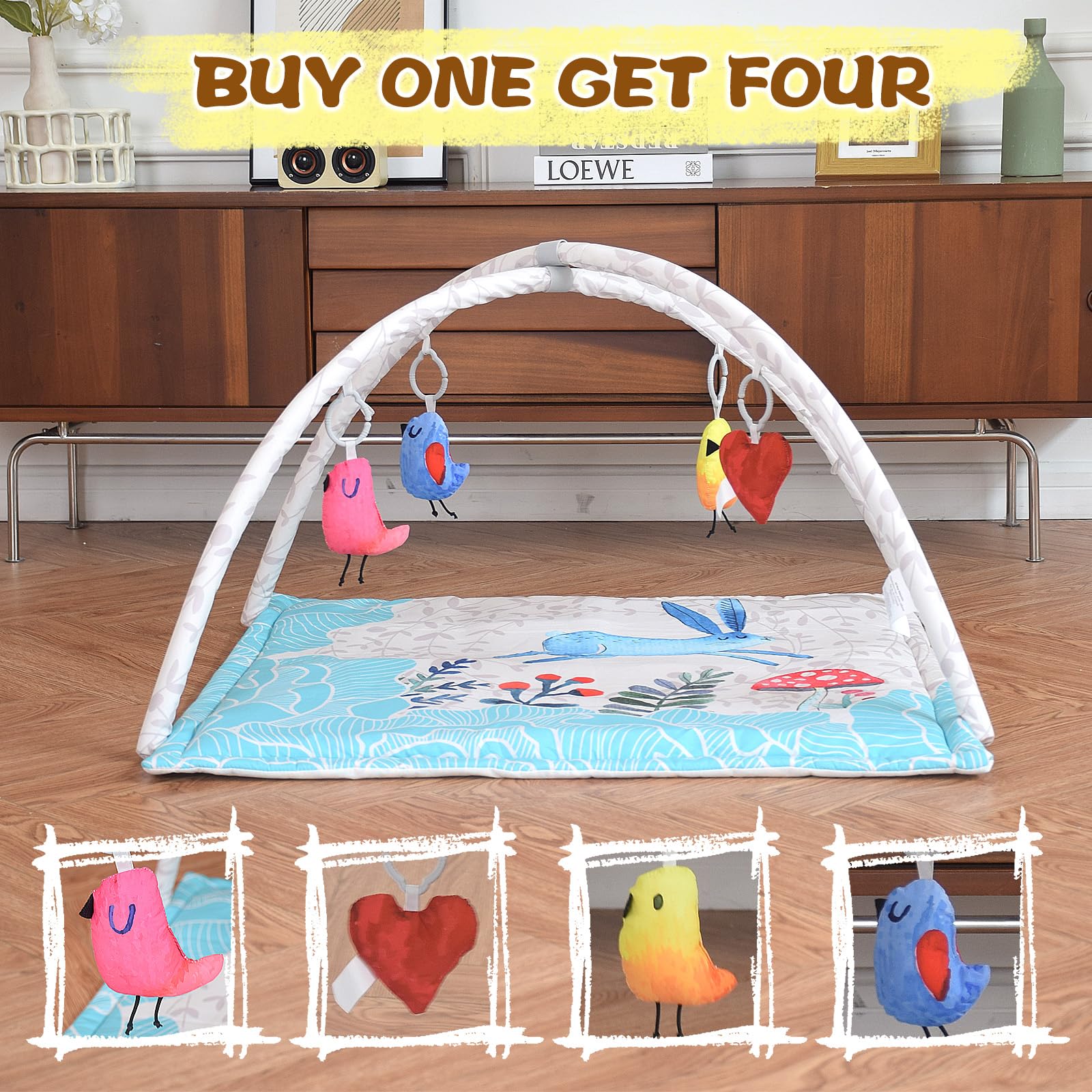 Baby Play Gym Mat,4 in 1 Baby Play Mat Activity Gym, Baby Play Mats for Babies, Portable Baby Play Gym Infant Activity Center for Newborn to Develop Motor Cognition Suitable for Newborns to Toddlers
