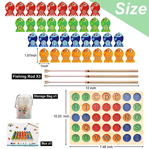 BigShu Toddler Learning Educational Toys for 2 3 4 5 Year Old Boys Girls Wooden Magnetic Fishing Kids Toys Games Letters ABC Numbers Alphabet Puzzle Montessori Toys for Ages 2+ STEM Preschool Gifts