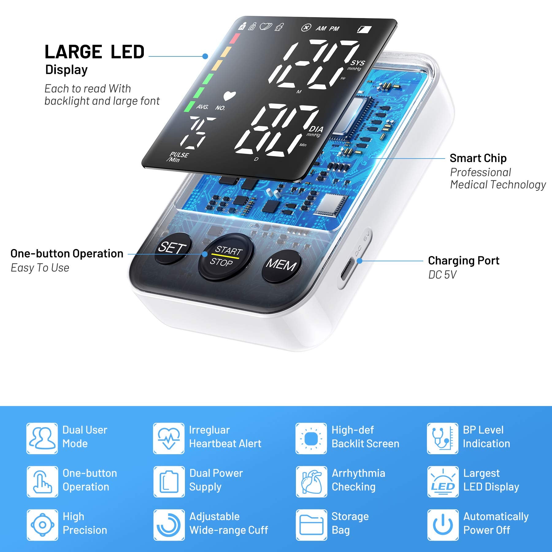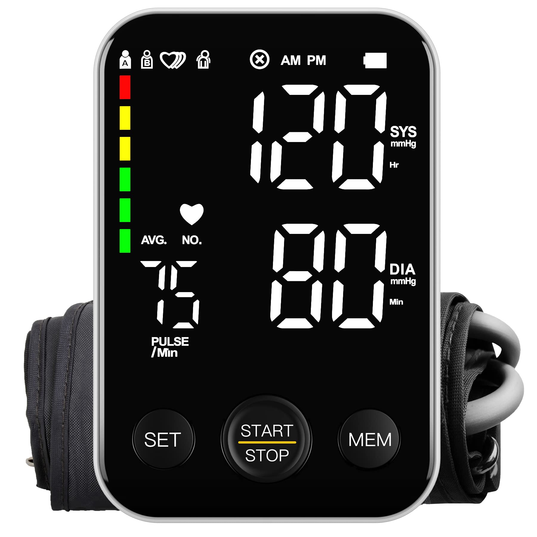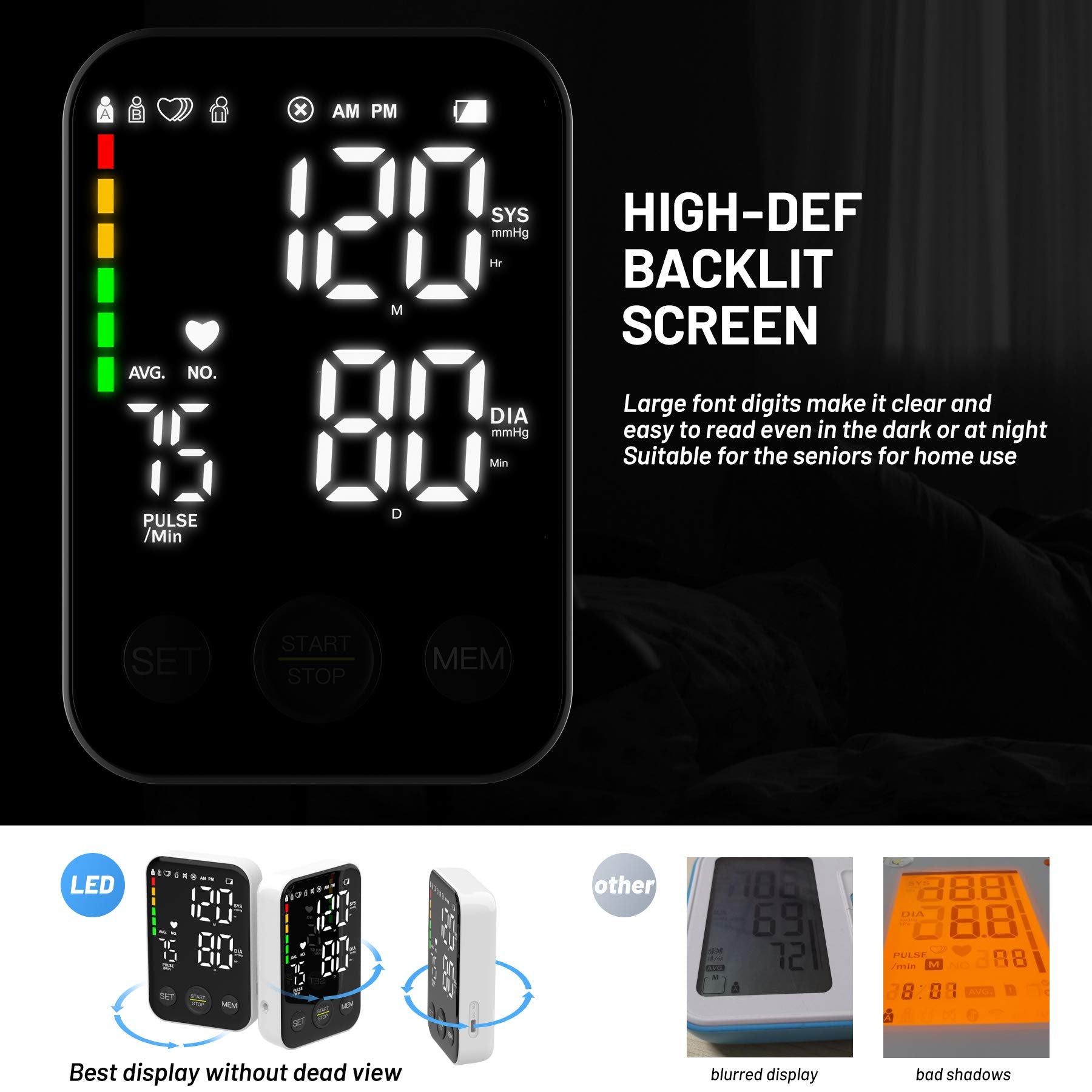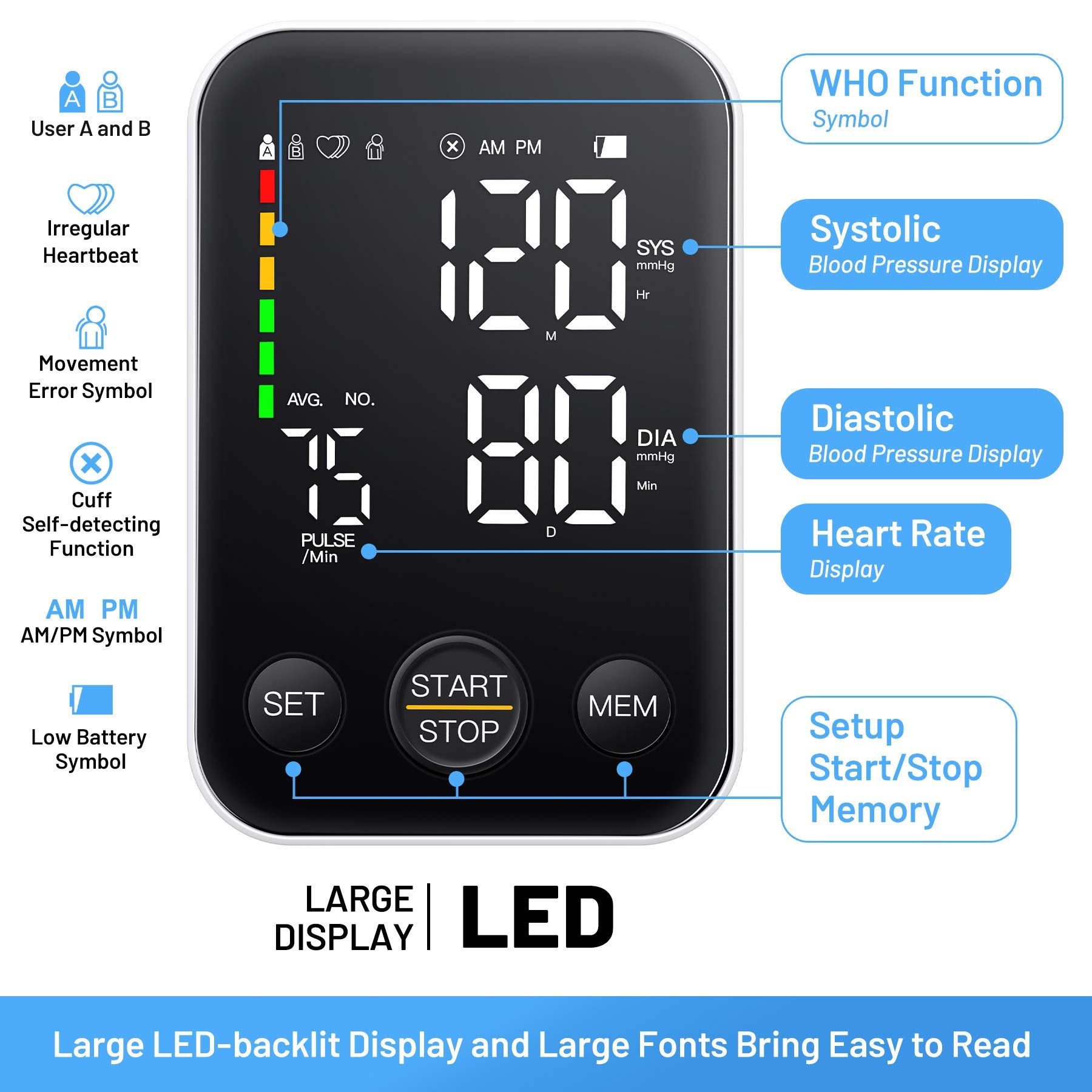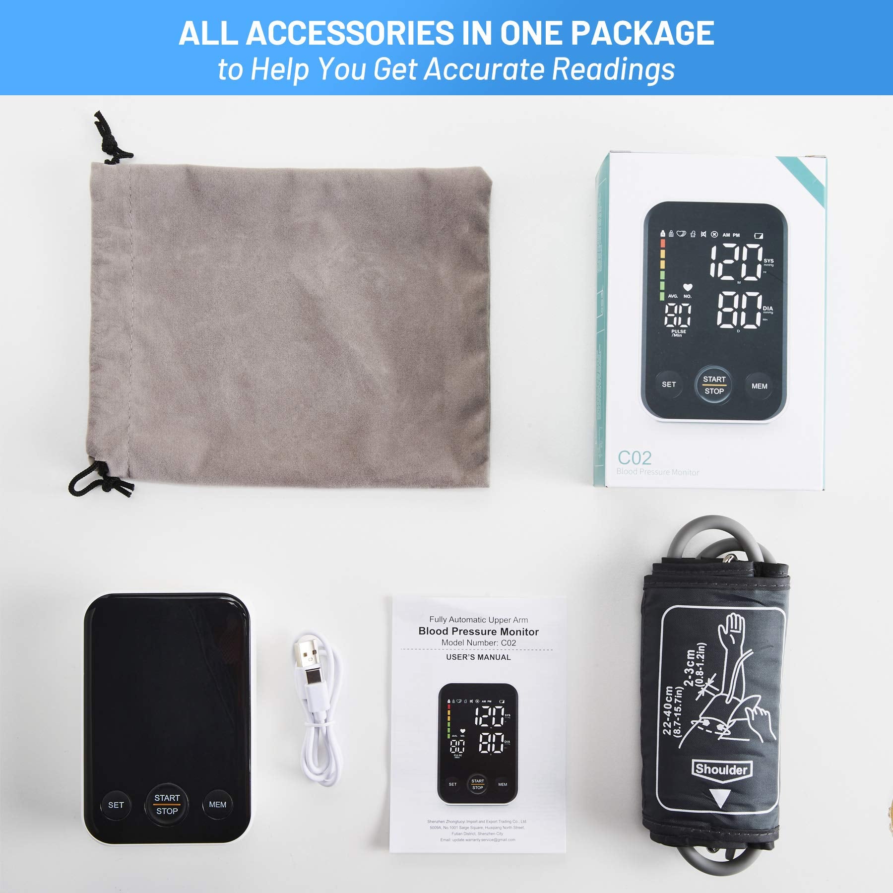 Blood Pressure Monitor Upper Arm Blood Pressure Monitors for Home Use with 2x120 Reading Memory Adjustable Arm Cuff 8.7"-15.7" LED Background Light Large Display Machine with Storage Bag - Black