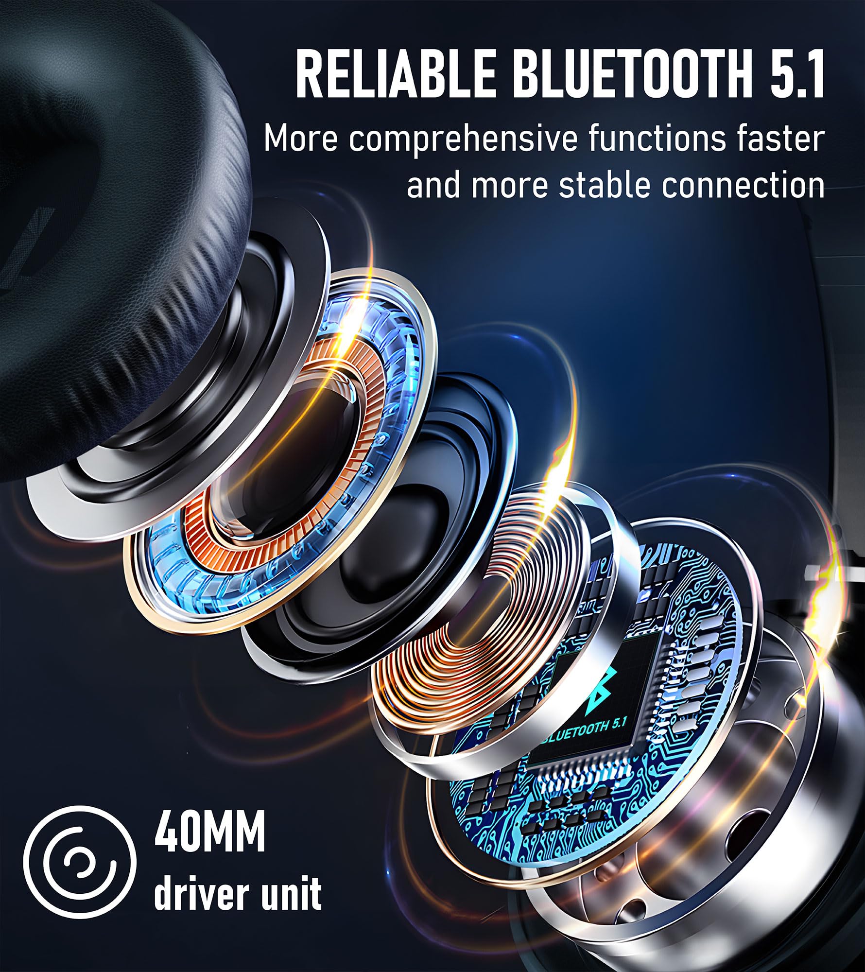 Bluetooth Headphones, Wireless headphones bluetooth, 70H Playtime Headphones Wireless Bluetooth 5.1 with With Mic & 3EQ Modes, Over Ear Headphones HiFi Stereo for Home Traver Work PC/Callphones