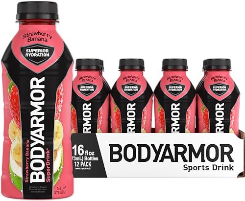 BODYARMOR Sports Drink Sports Beverage, Strawberry Banana, Coconut Water Hydration, Natural Flavors With Vitamins, Potassium-Packed Electrolytes, Perfect For Athletes, 16 Fl Oz (Pack of 12)