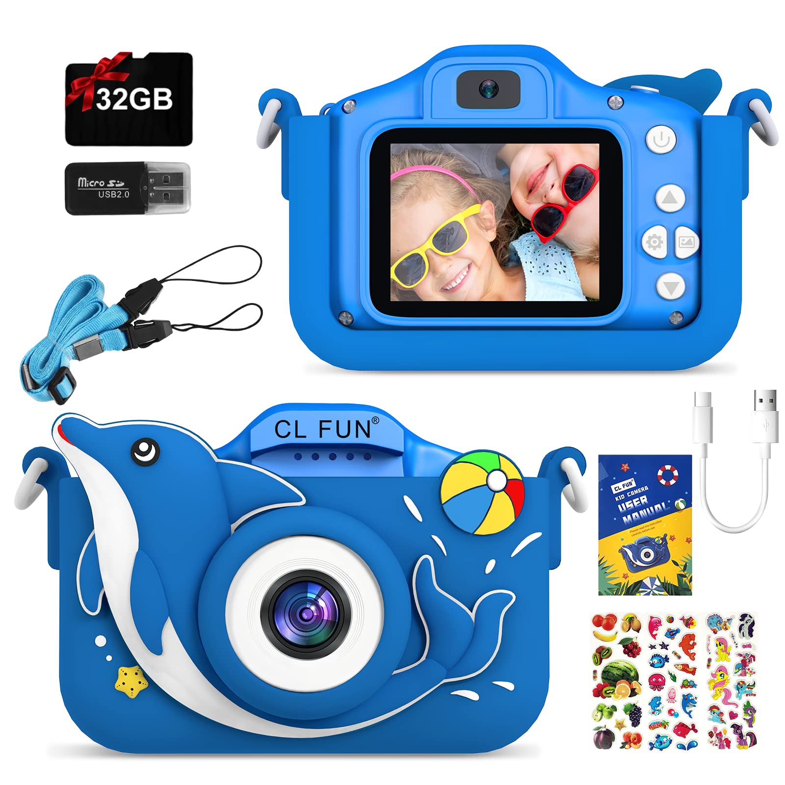 CL FUN Kids Camera, Toy Camera for Kids Girls/Boys Age 3-12, Toddler Digital Video Camera with Silicone Cover, Portable Toy Camera with 32GB SD Card, Christmas Birthday Gifts for Kids-Dark Blue