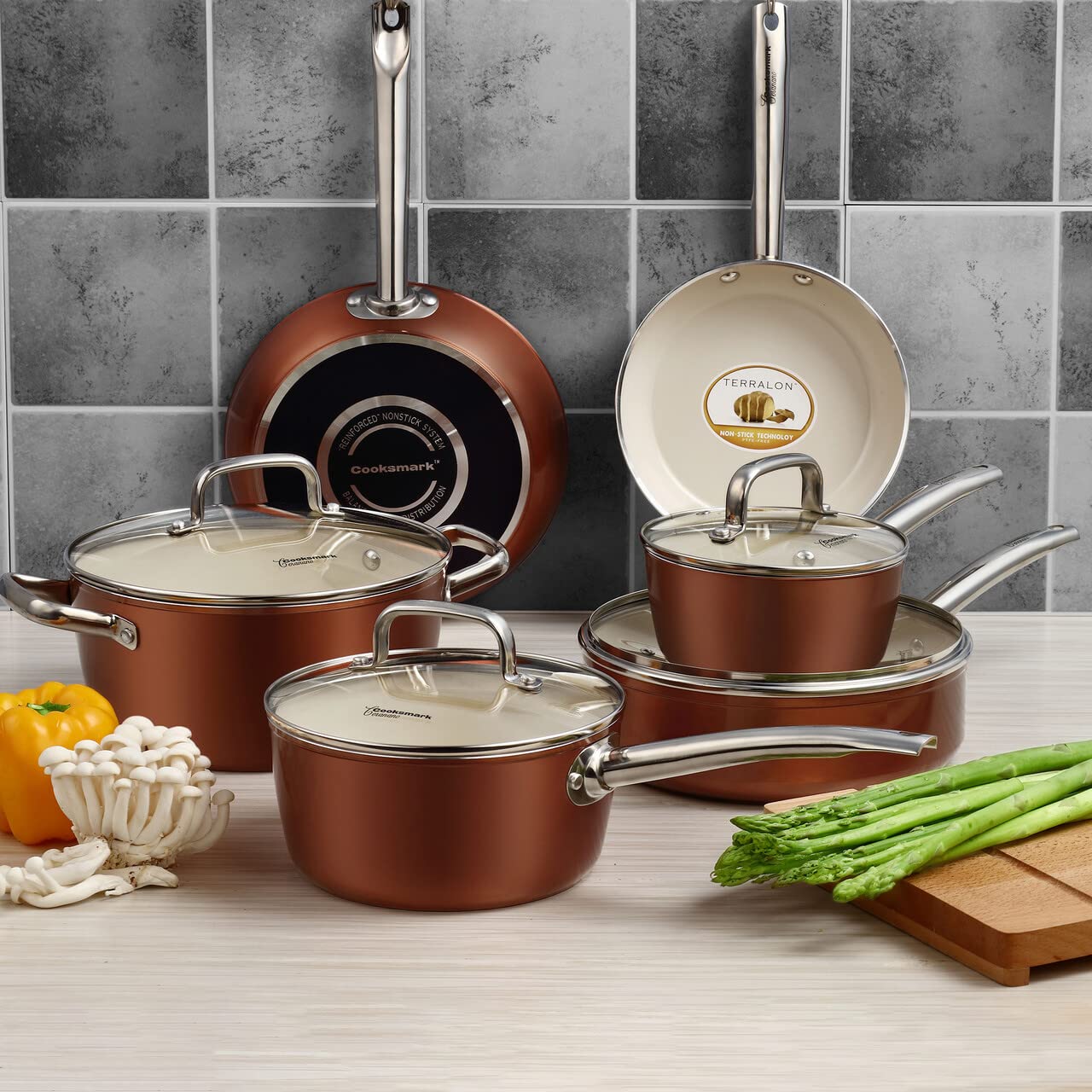 10-Piece Nonstick Copper Pots And Pans Cookware Set With Lids