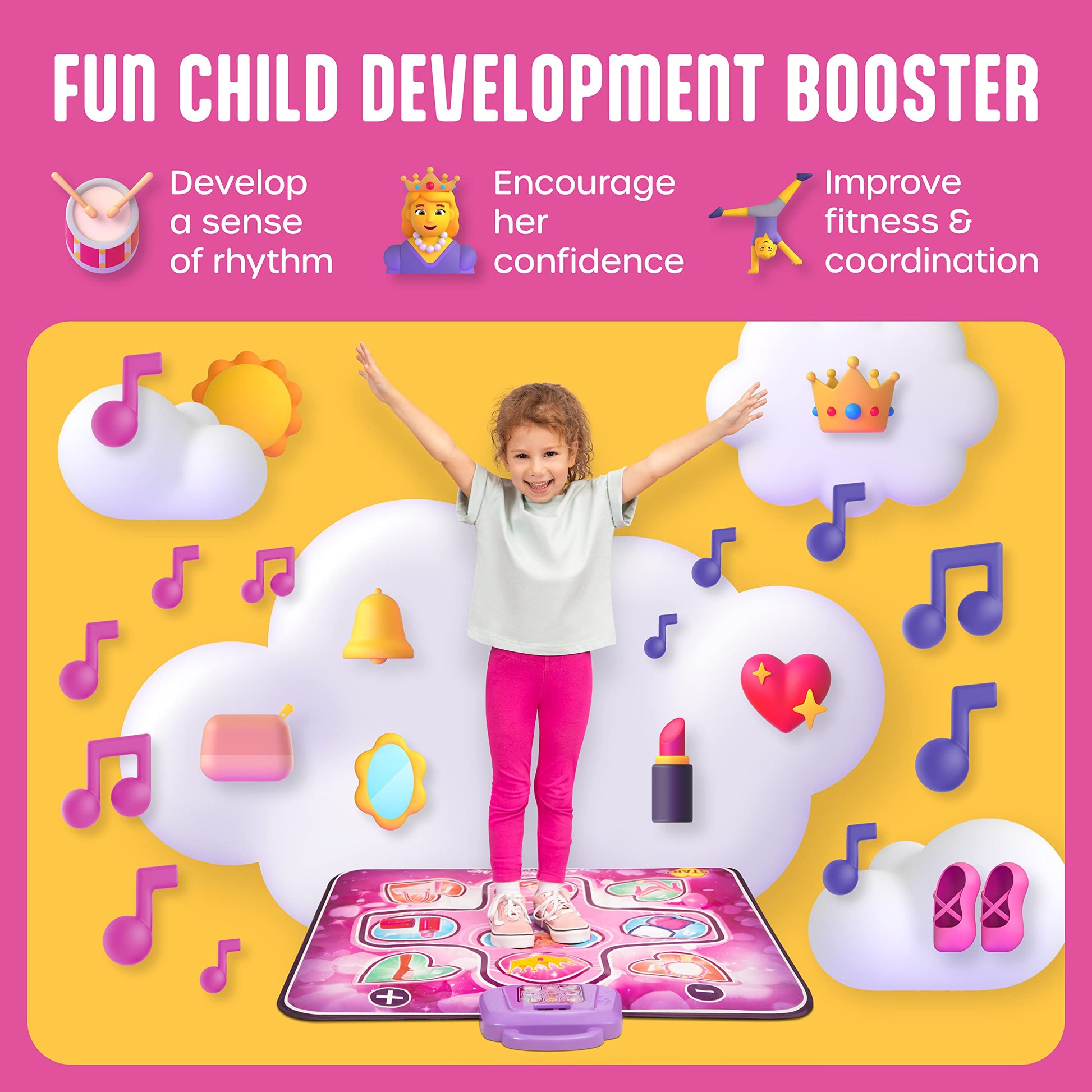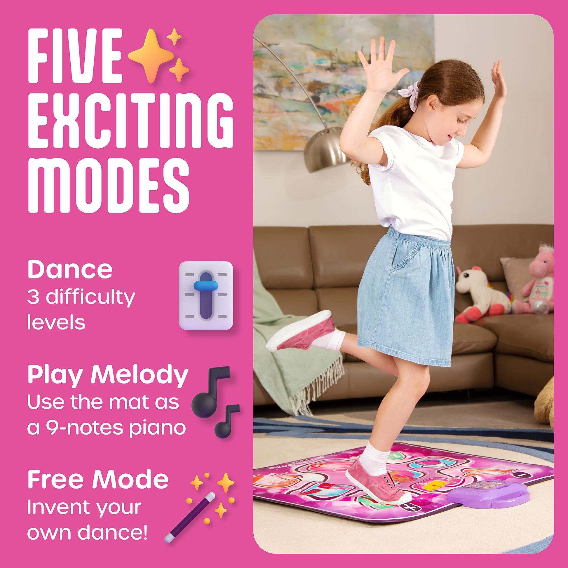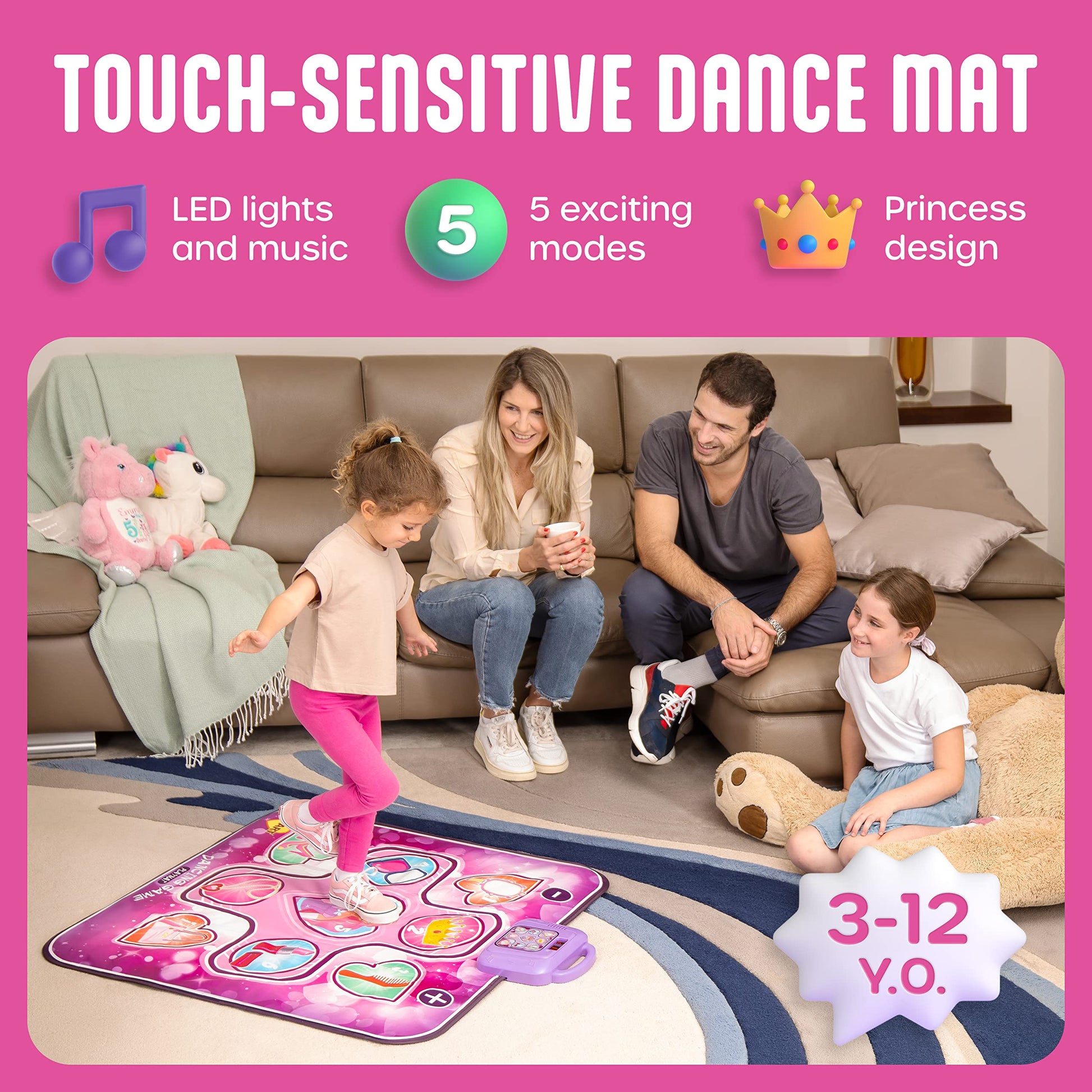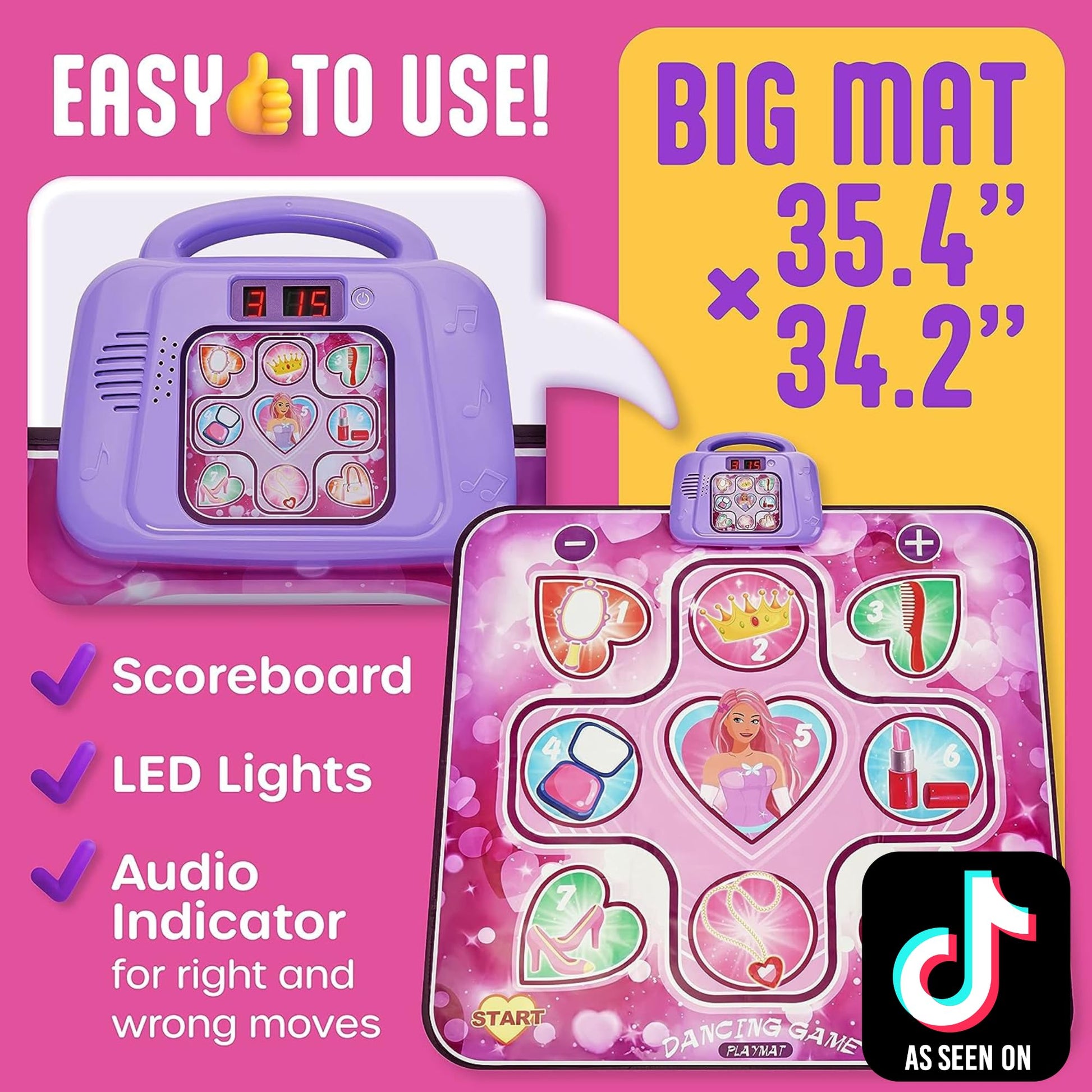 Dance Mat For Kids Ages 4-8 Year Old, Dance Pad For Girls, Toddlers, Music Mat, Dancing Mat with LED Lights, Adjustable Volume, Built-in Music, Dance Gifts For Girls, Dance Mat For Toddlers 3-5, 8-12