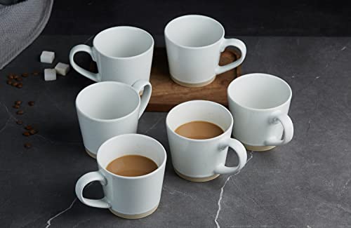 famiware Coffee Mugs for 6, 12 oz Mug Set, Dringking Cup with Handle for Coffee, Tea, Cocoa, Milk, Saturn serise, White
