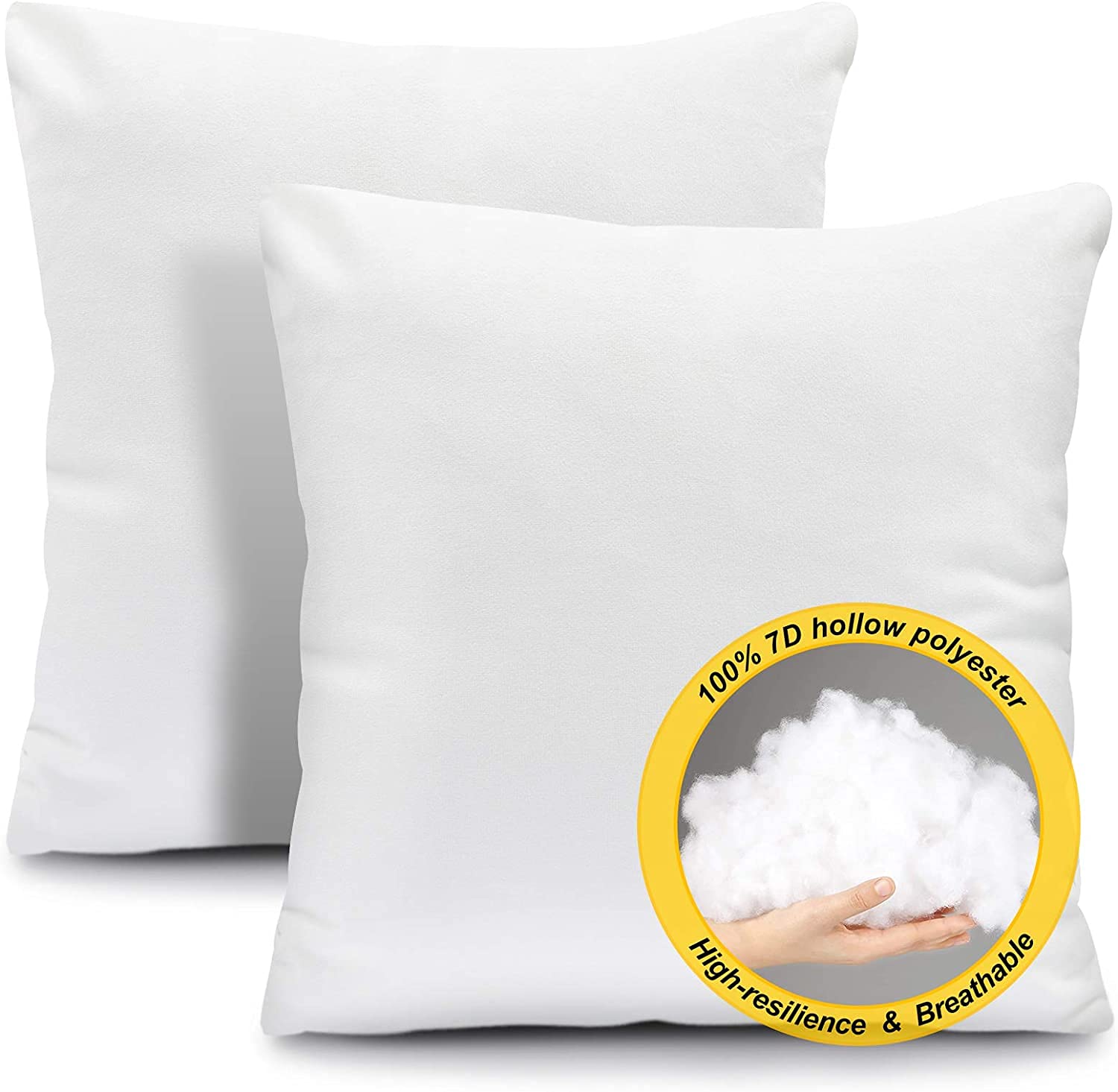 Fixwal 18x18 Inches Pillow Inserts Set of 2, Soft Microfiber Filled Pillow Inserts for Decorative Pillow Covers Cushion Bed Couch and Sofa