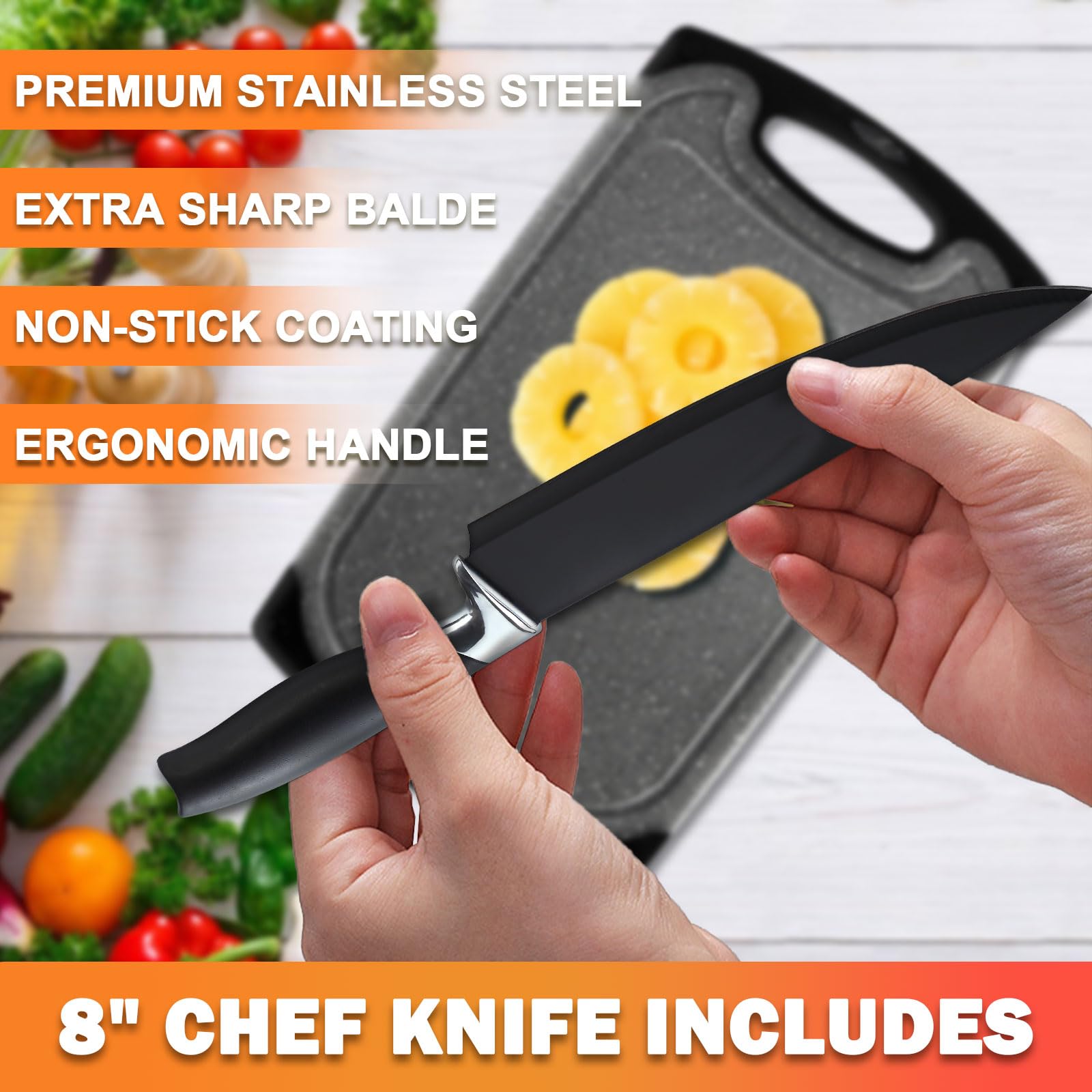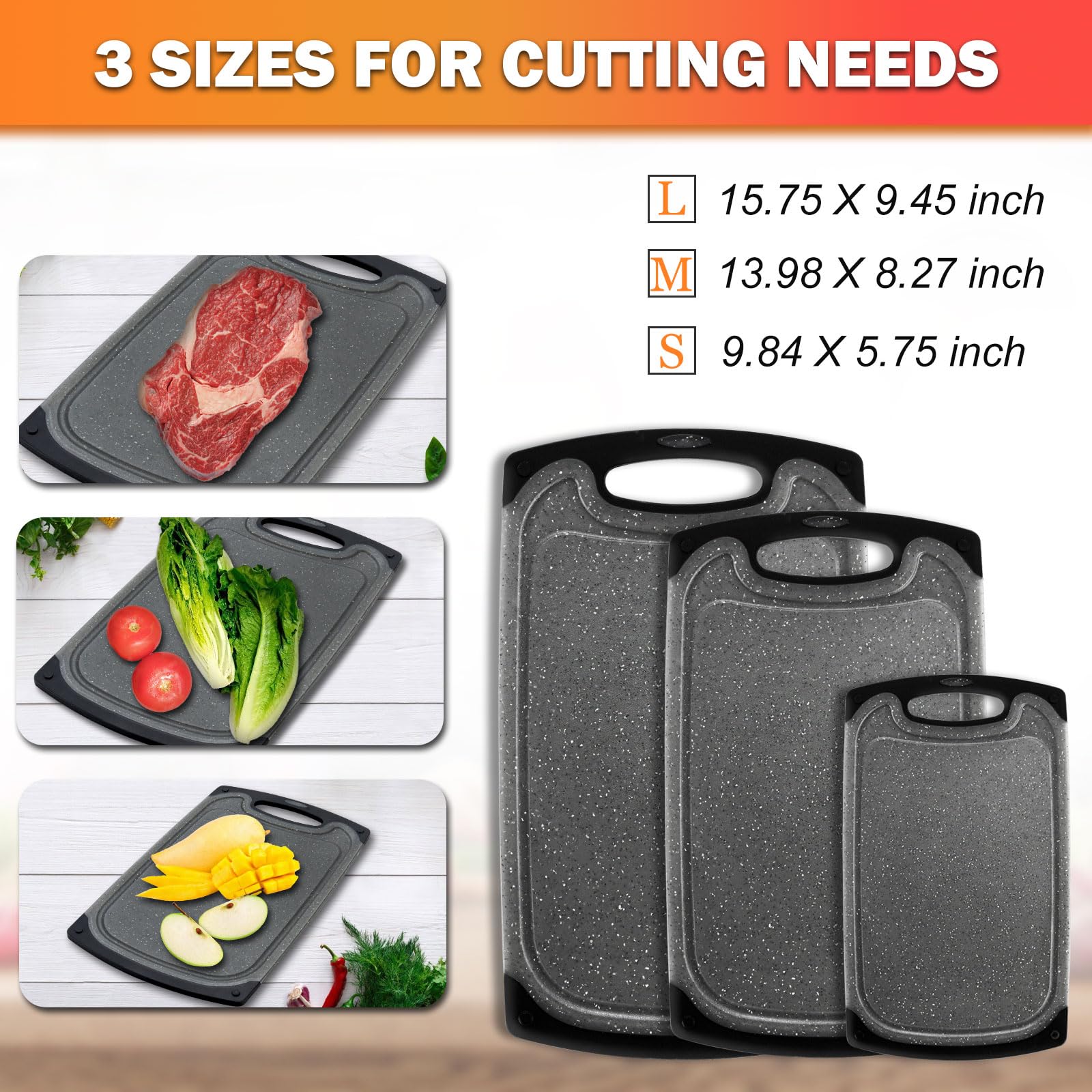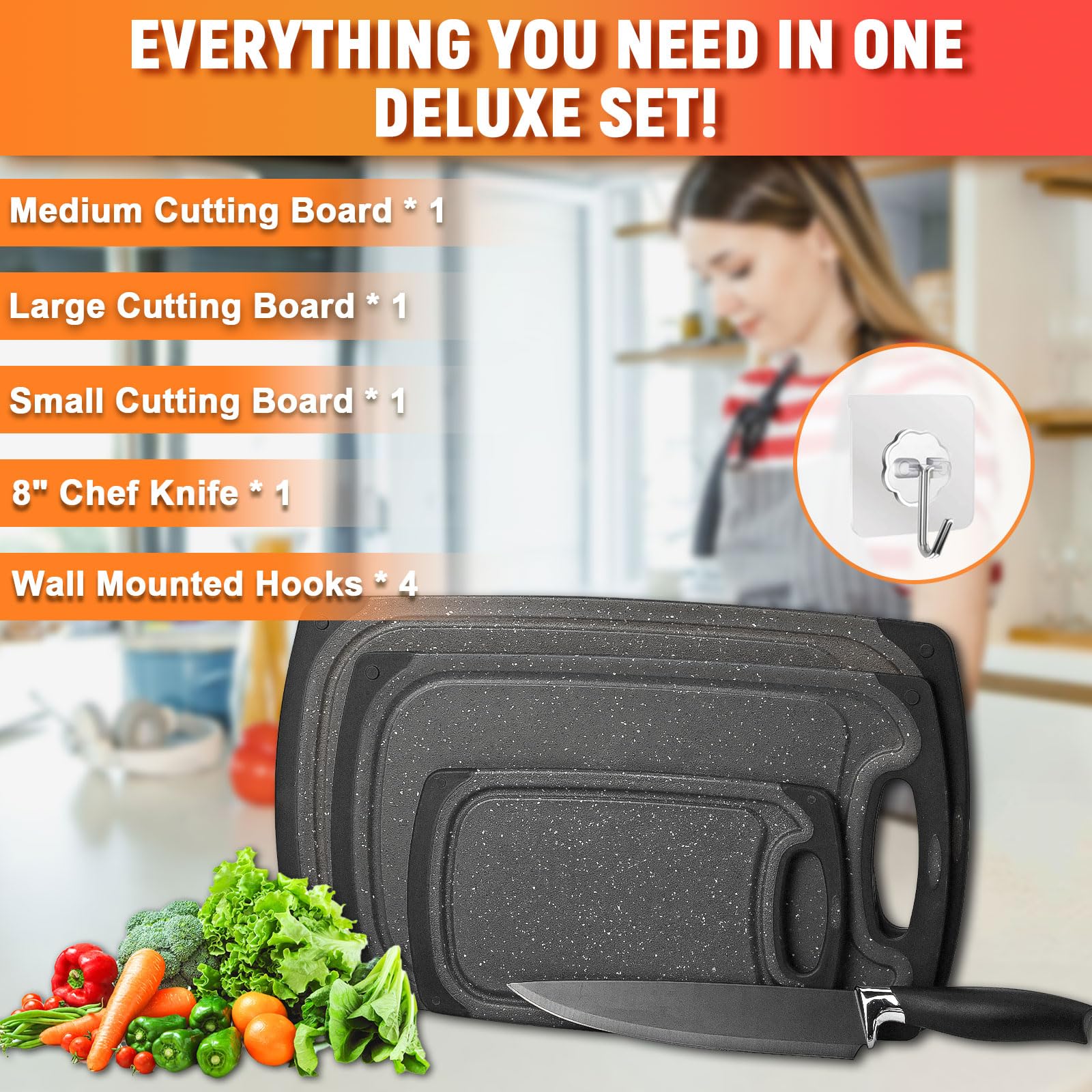 Funnydin Cutting Boards for Kitchen - 8 Set - Plastic Cutting Board Set with Chef Knife & 4 Hooks, Non-Slip Chopping Board Set, Kitchen Cutting Boards with Juice Groove, Grinding Area, Dishwasher Safe