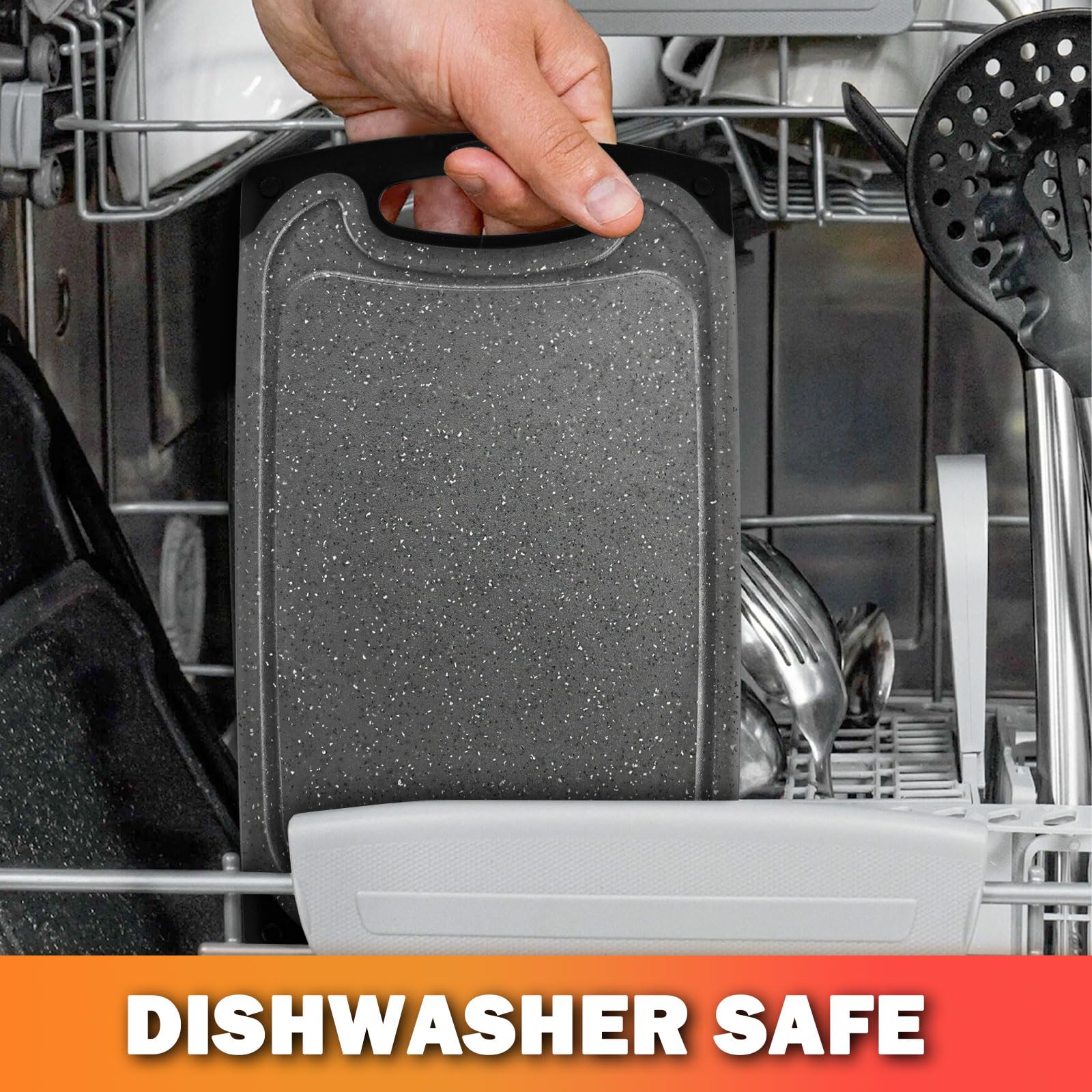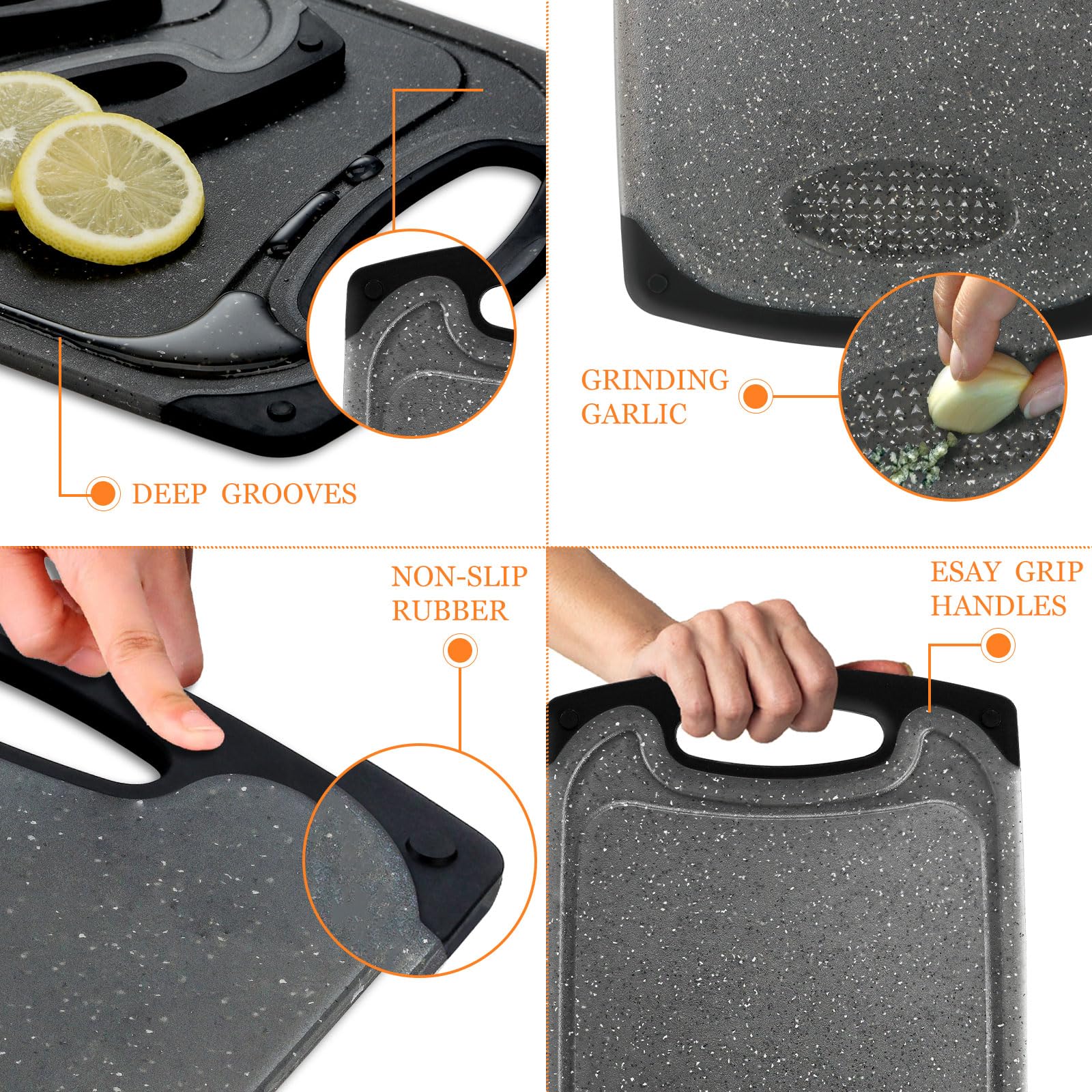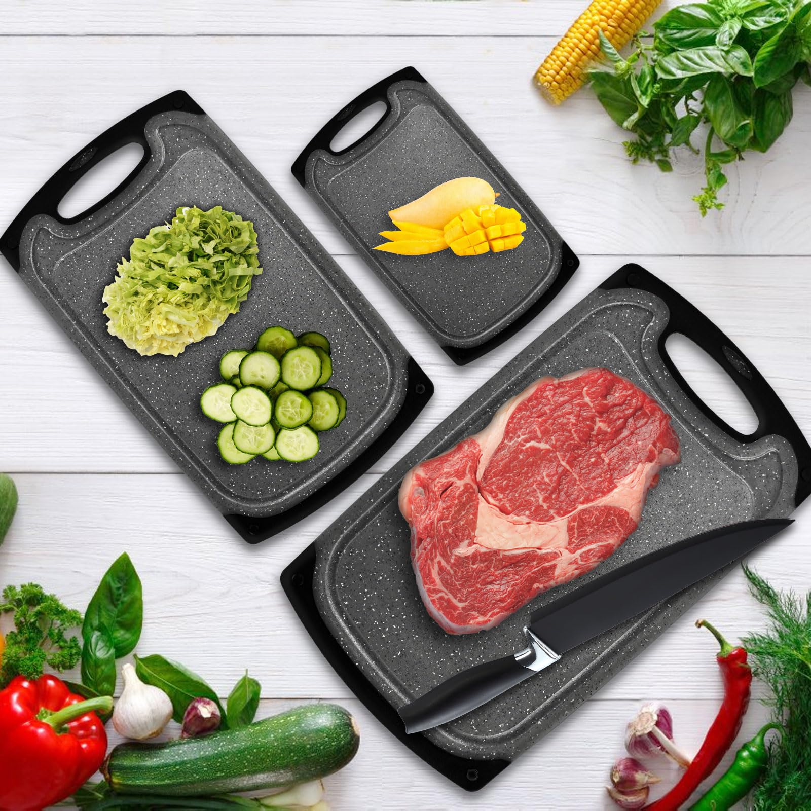 Funnydin Cutting Boards for Kitchen - 8 Set - Plastic Cutting Board Set with Chef Knife & 4 Hooks, Non-Slip Chopping Board Set, Kitchen Cutting Boards with Juice Groove, Grinding Area, Dishwasher Safe
