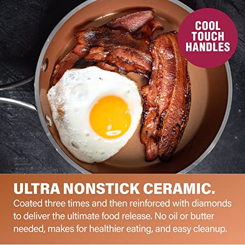 Gotham Steel Hammered 15 Pc Ceramic Pots and Pans Set Non Stick Cookware Set, Kitchen Cookware Sets, Ceramic Cookware Set with Non Toxic Cookware, Copper Pot and Pan Set, Oven & Dishwasher Safe
