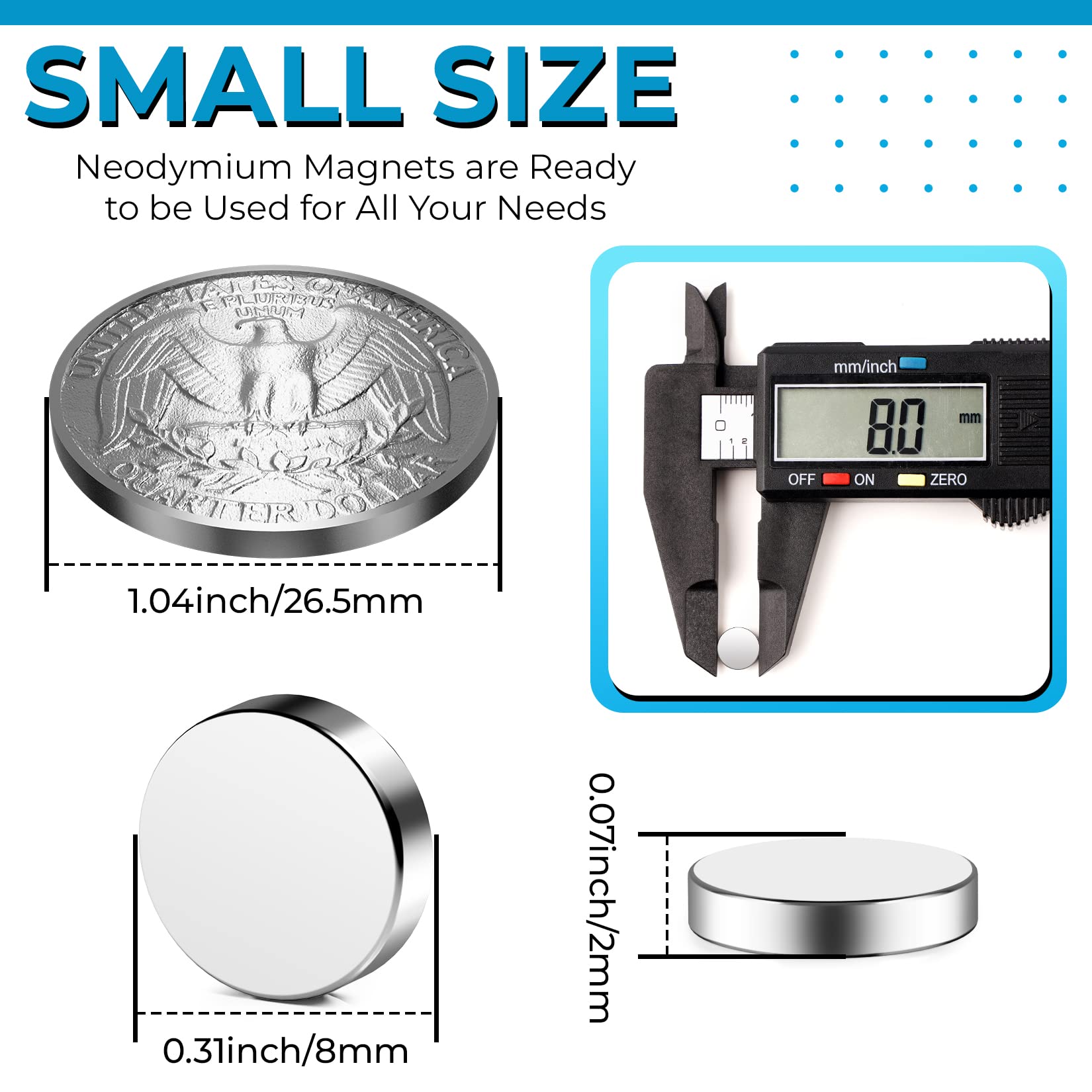Grtard Tiny Magnets, 50 Pack Rare Earth Magnets, Round Magnets, Neodymium Magnets for Refrigerator, DIY, Building, Crafts and Kitchen Cabinet, Office Magnets - 8×2mm