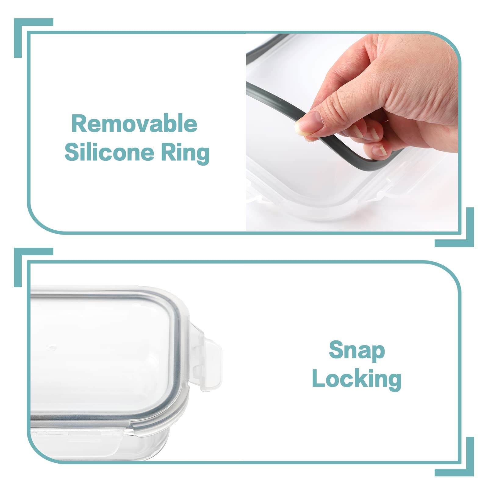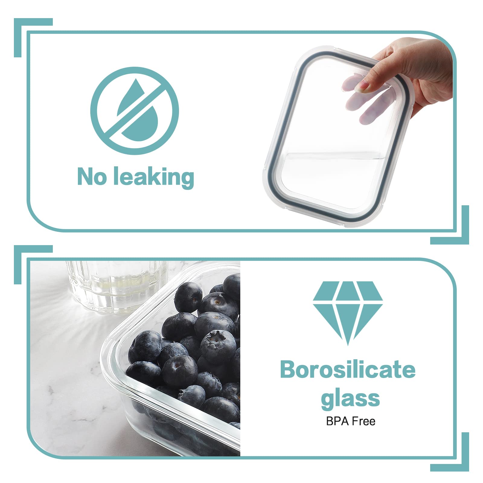 HOMBERKING 10 Pack Glass Meal Prep Containers, Food Storage Containers with Lids, Airtight Lunch Bento Boxes, BPA-Free & Leak Proof (10 lids & 10 Containers) - Grey