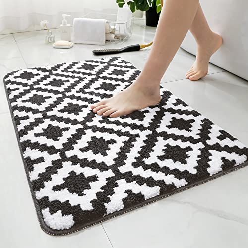 HOMEIDEAS Bathroom Rugs, Soft and Absorbent Shaggy Microfiber Bath Mat Non-Slip Washable (16"x 24", Black)