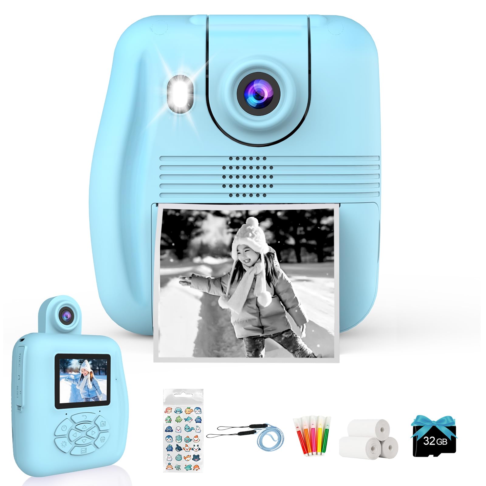 Inkless Instant Print Digital Video Camera For Kids With MP3 Player, Puzzle Games