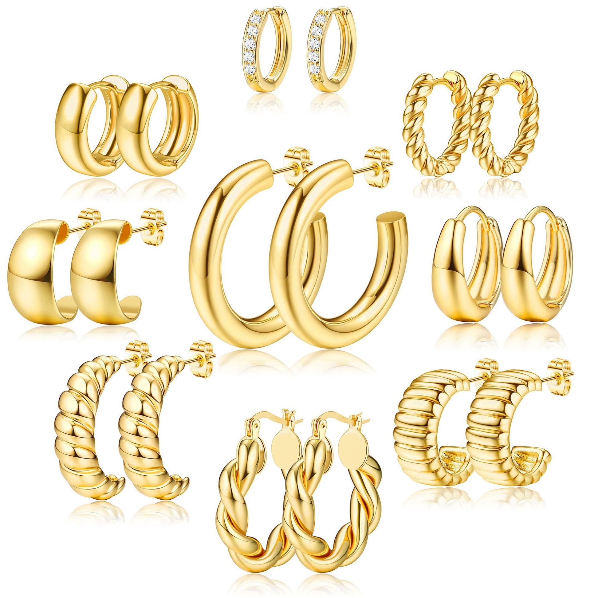 KRFY Gold Hoop Earrings Set for Women Gold Hoops Twisted Huggie Hoops Earrings 14K Plated for Girls Gift Lightweight 9 Pairs Jewelry for Women
