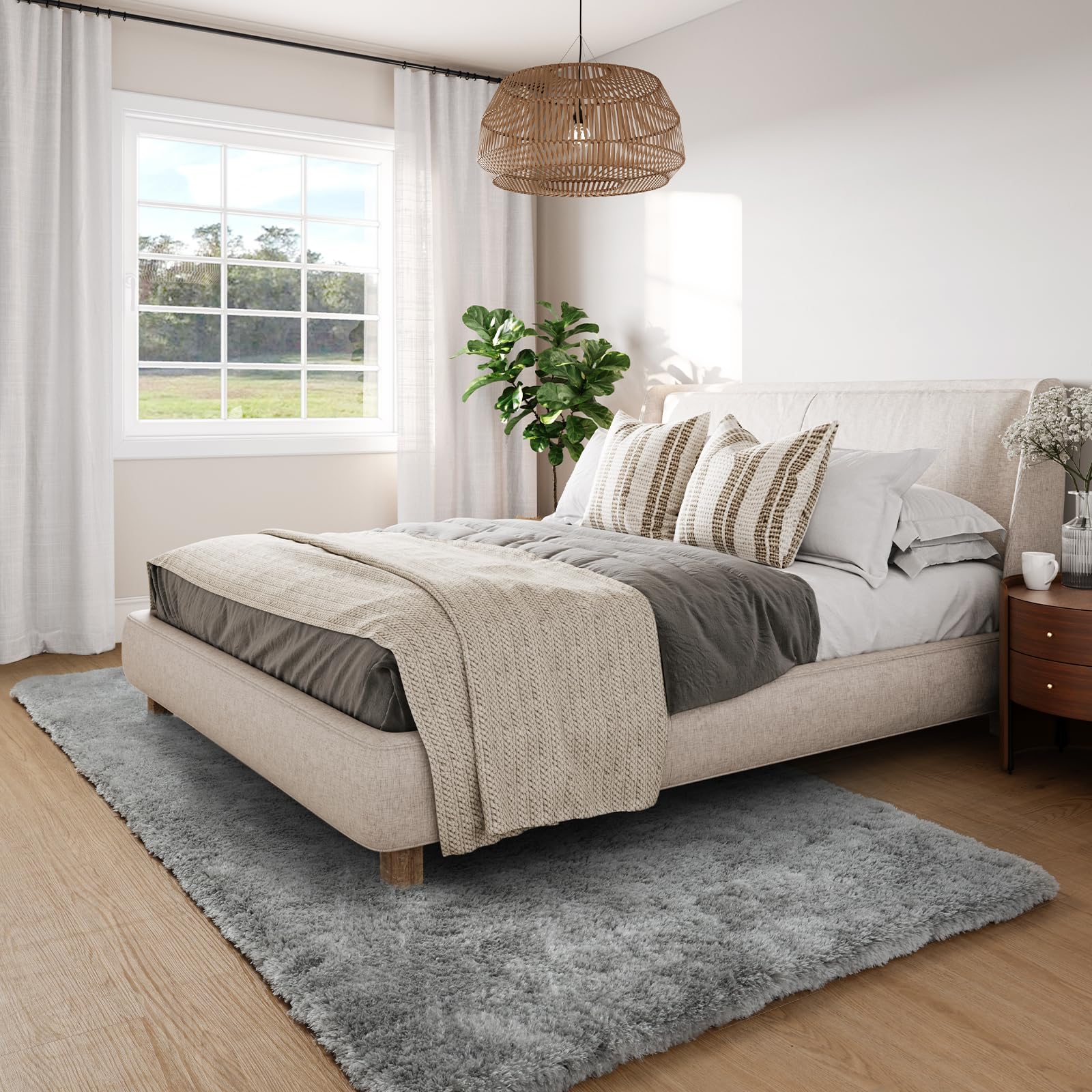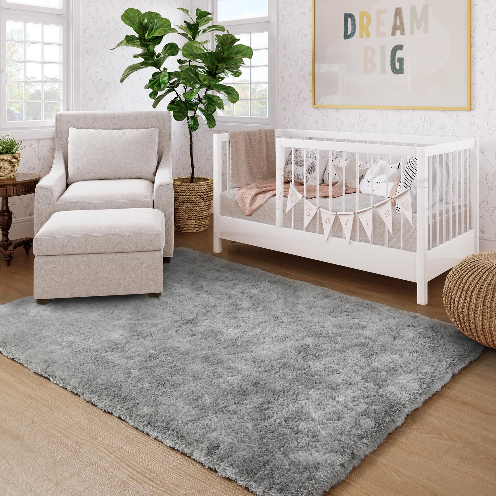 Lahome Fluffy Fuzzy Rug 5x7 Area Rugs for Living Room, Grey Faux Fur Rug for Kids Bedroom with Rubber Backing, Ultra Soft Non-Shedding Plush Shaggy Carpet for Dorm Home Office