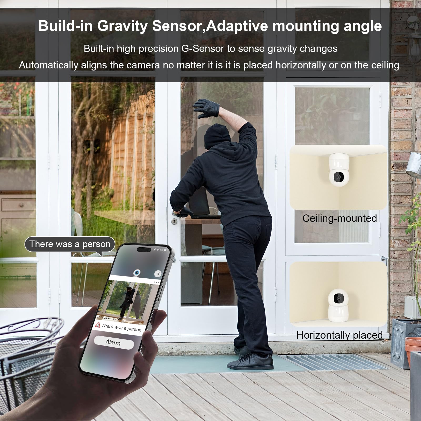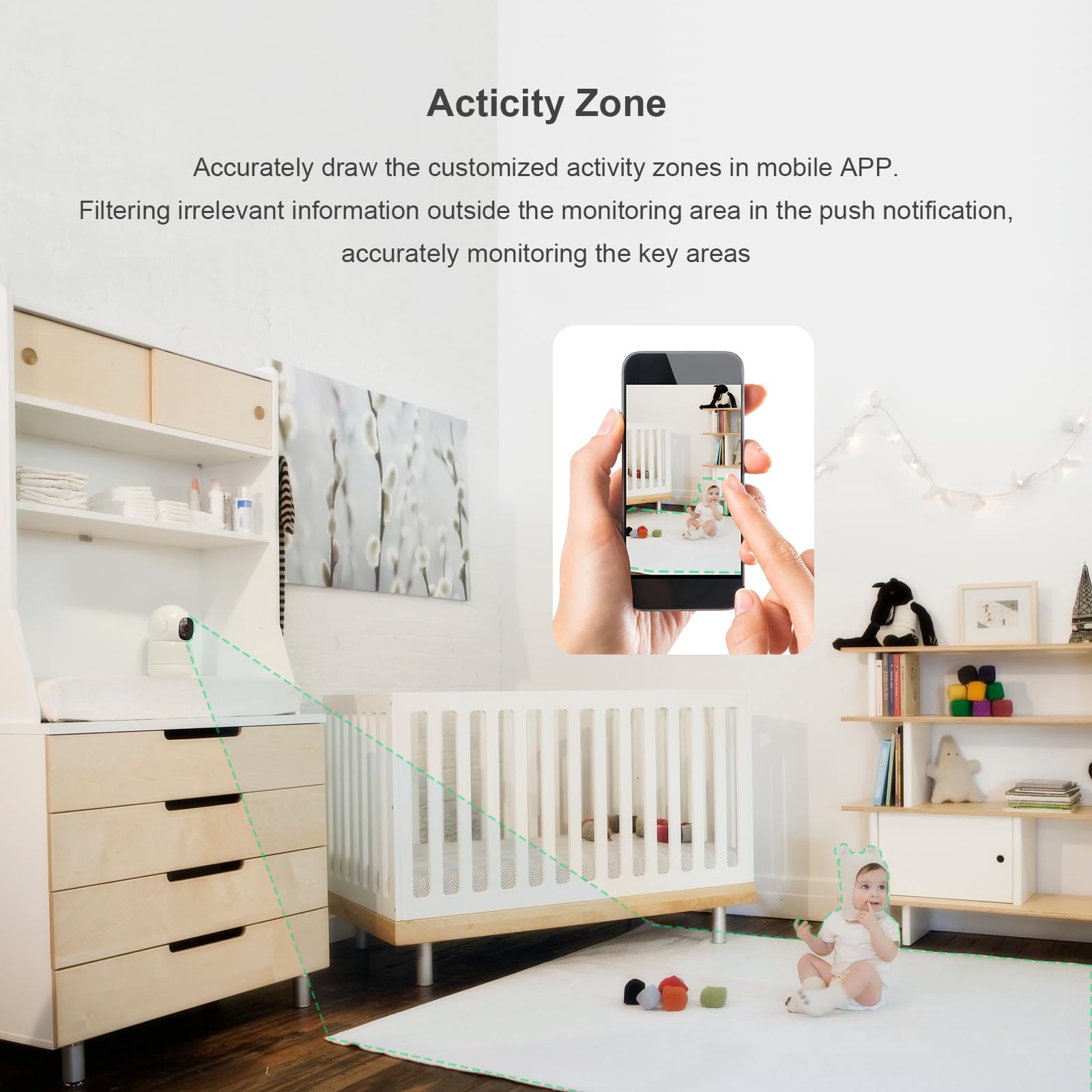 Linkthai Indoor Security Camera, 2K Pet Dog Camera with Phone App,Baby Monitor Camera with Auto Tacking Motion Detection, Cloud & SD Card Storage3 with Night Vision(2.4GHz ONLY) (White)