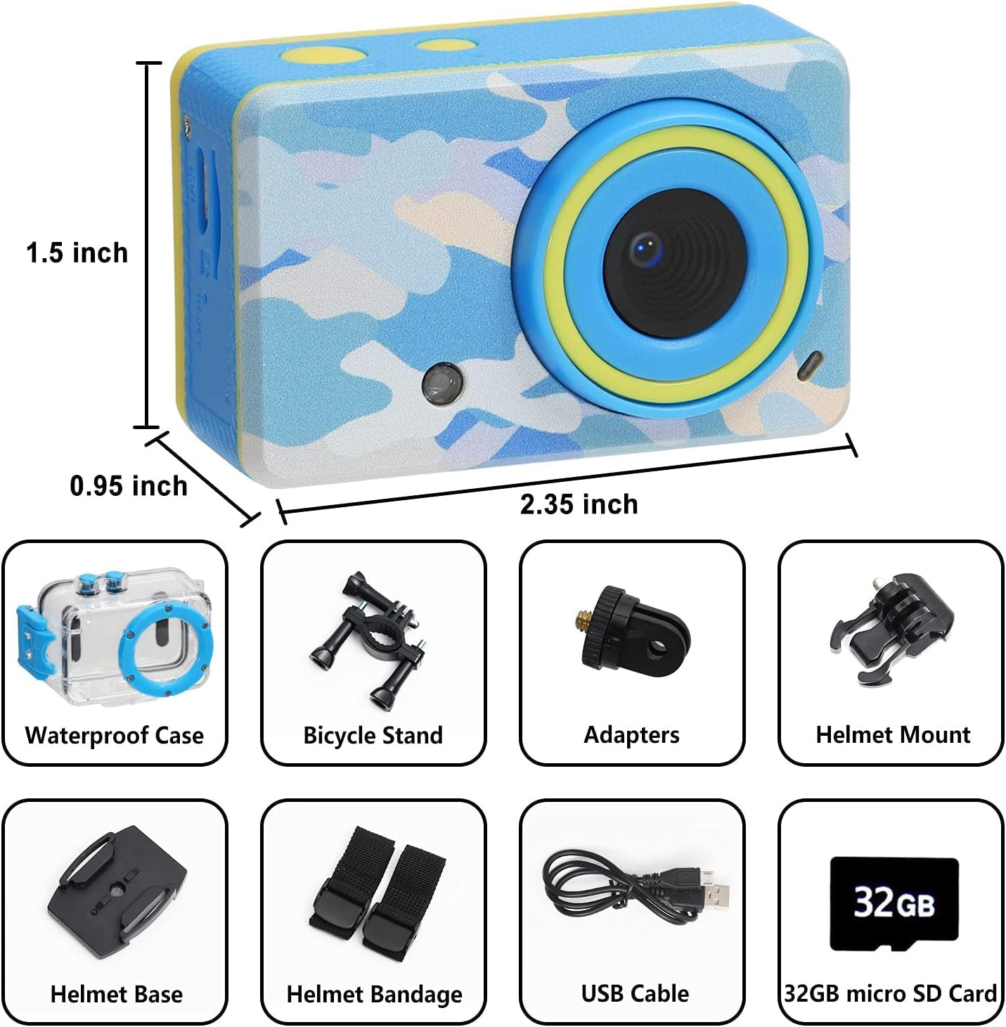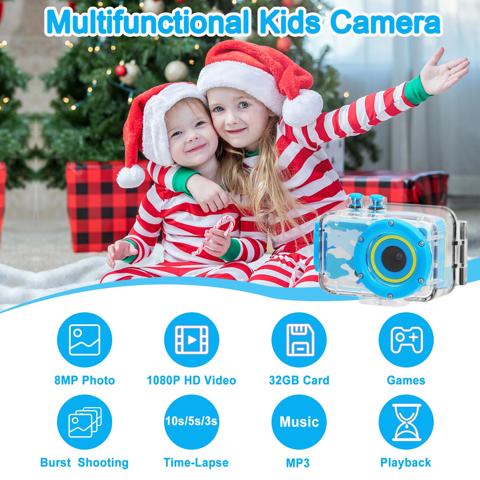 Luoba Kids Camera Waterproof, Toys for 3-10 Year Old Boys Girls, Underwater Children Digital Camera Christmas Birthday Kids Boys Gifts Age 4 5 6 7 8, Toddler Video Toy Camera with 32GB SD Card (Blue)