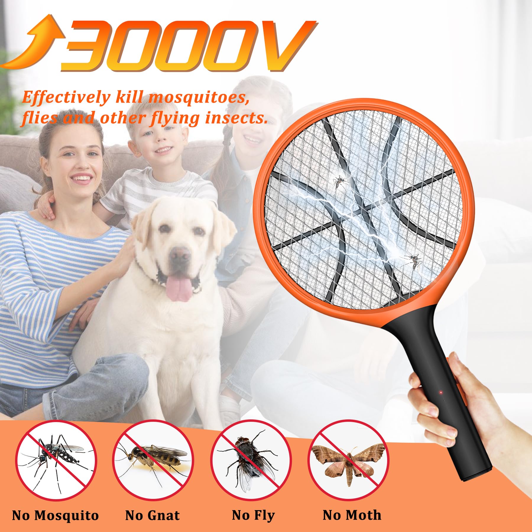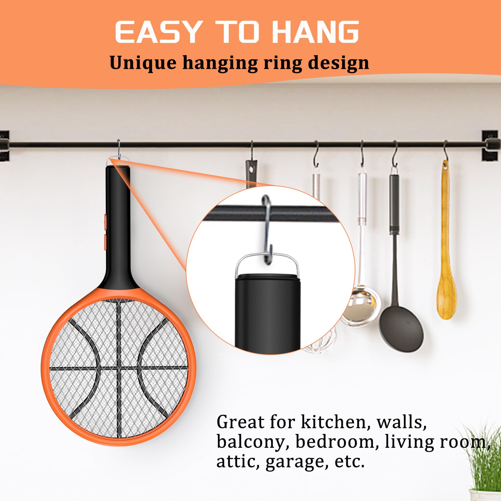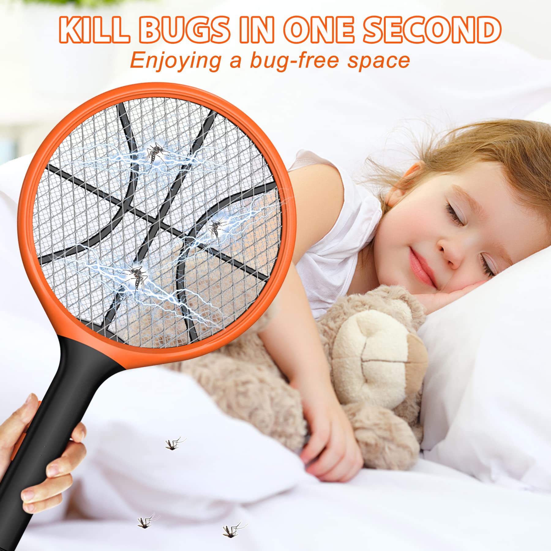 LUOJIBIE Electric Fly Swatter, Bug Zapper Racket Rechargeable Mosquito Zapper Handheld Fly Zapper with Hanging Ring for Home Indoor Outdoor, Large Size-1 Pack