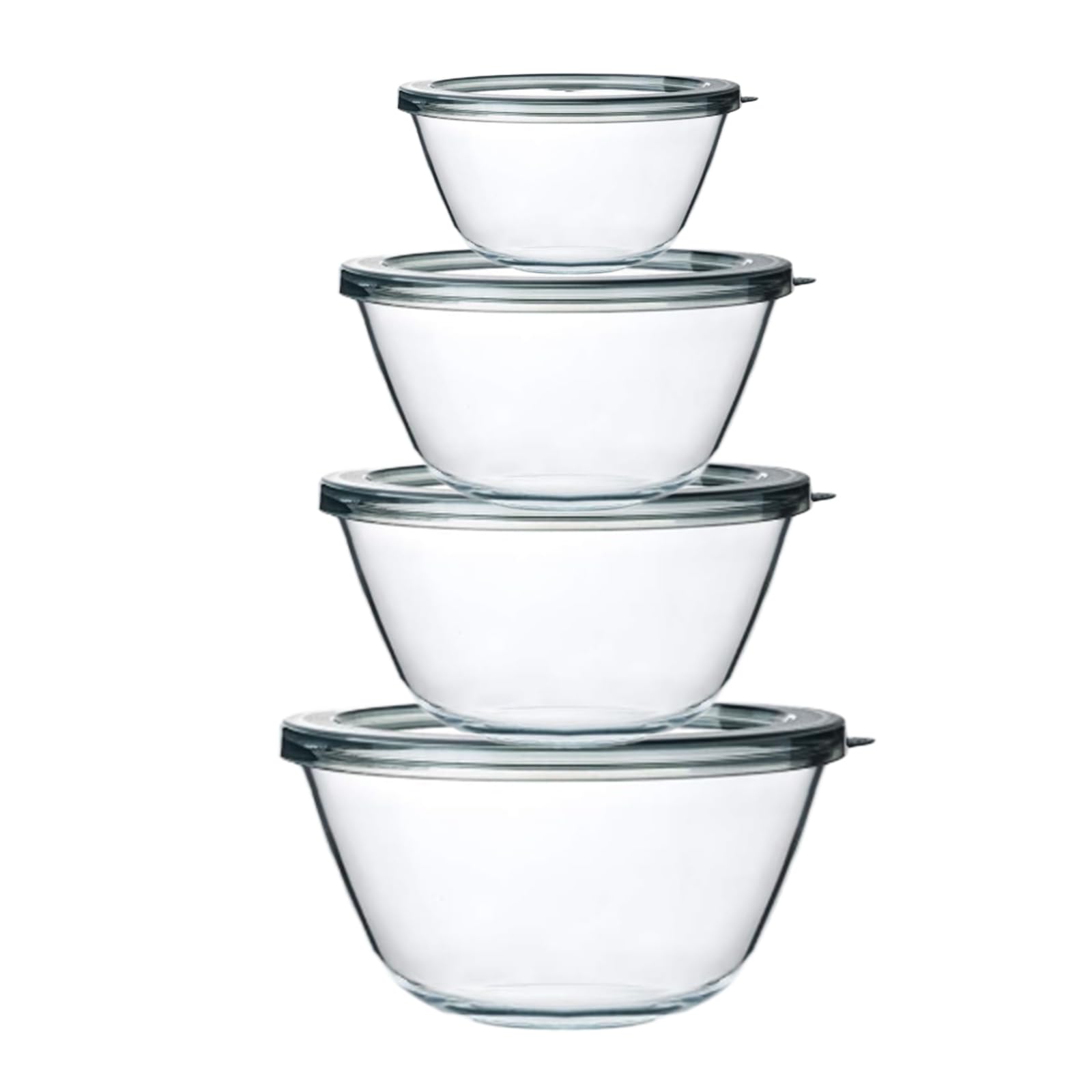 M MCIRCO Glass Bowl Set with Lids, 4 Packs
