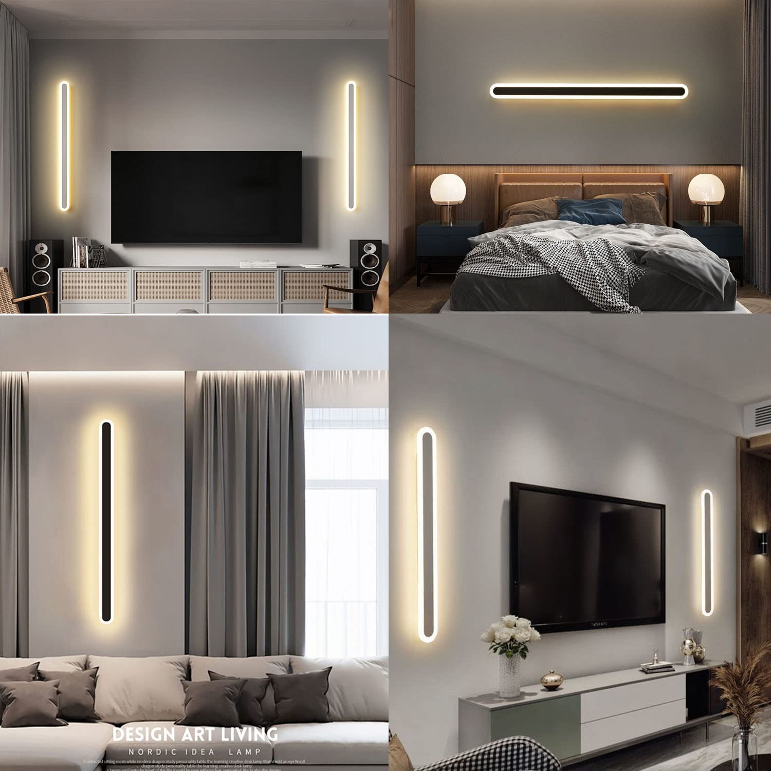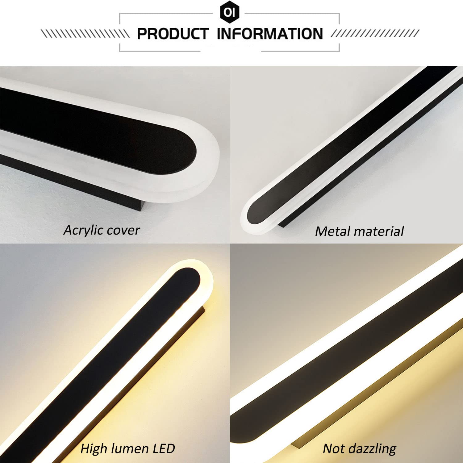 Maxziller 16inch Long Modern 2Pack LED Wall Light,24W Warm White 110V led Wall Mount Lighting Fixture Rectangular Black Wall Lights Elegant Frosted White Acrylic Anti Rust