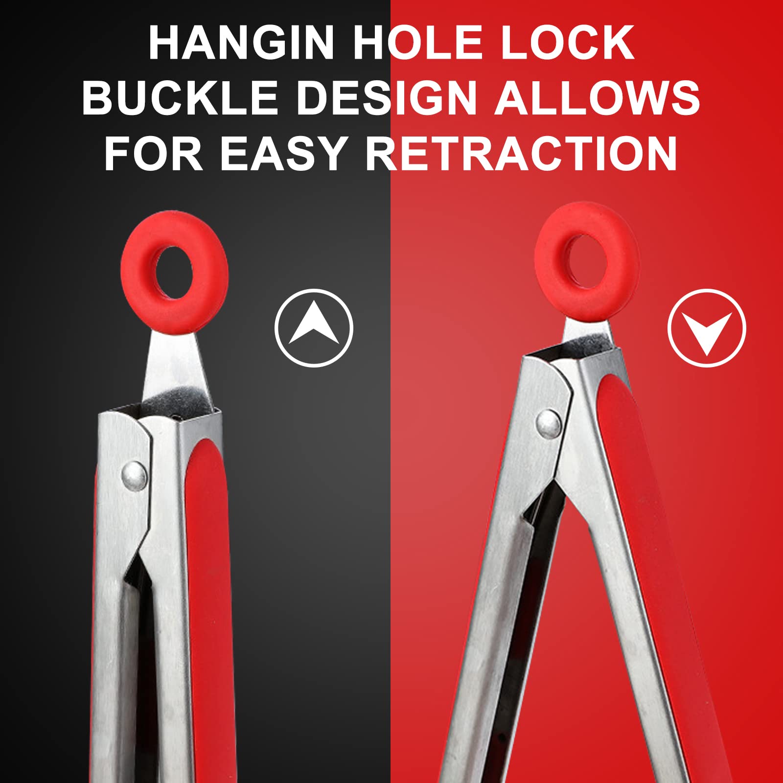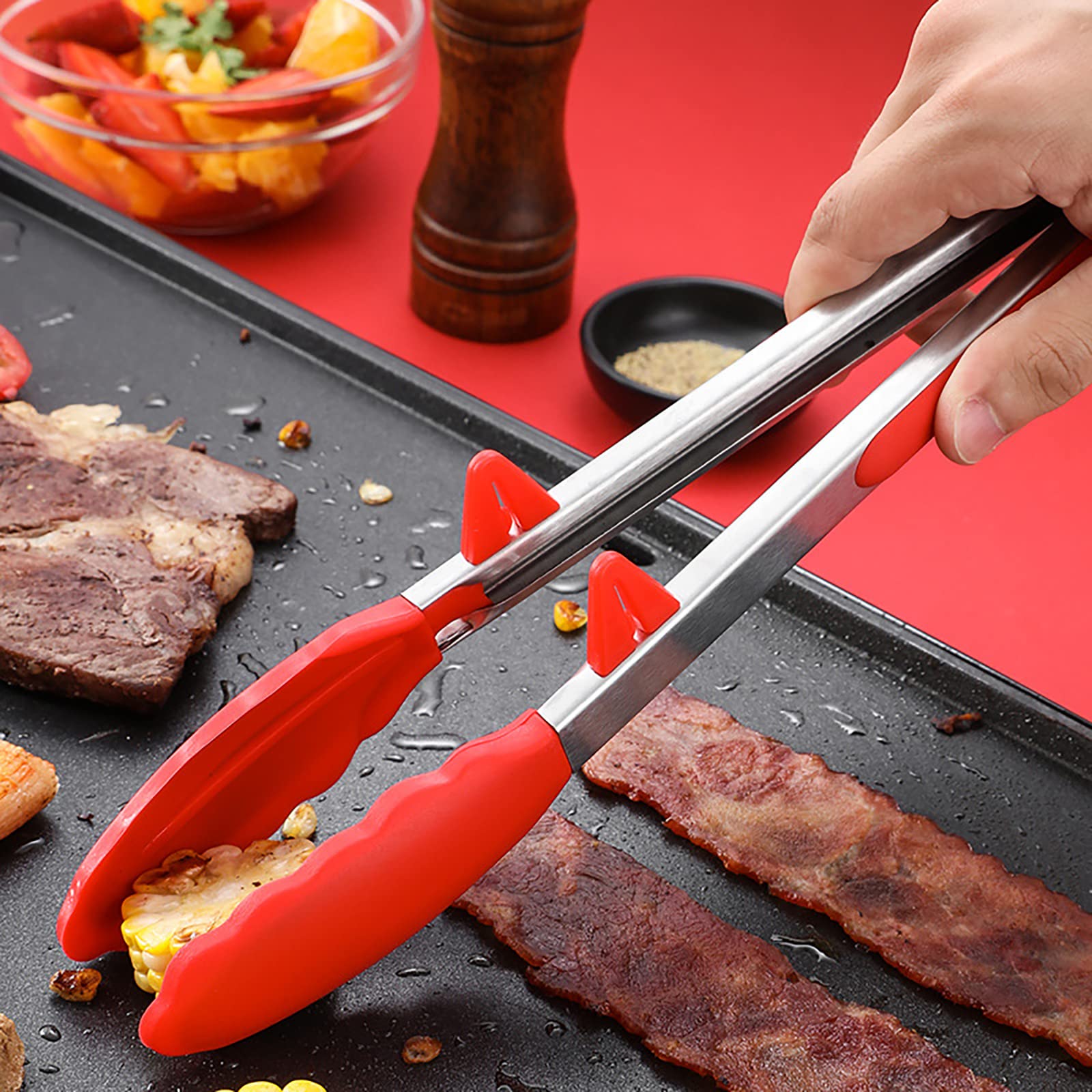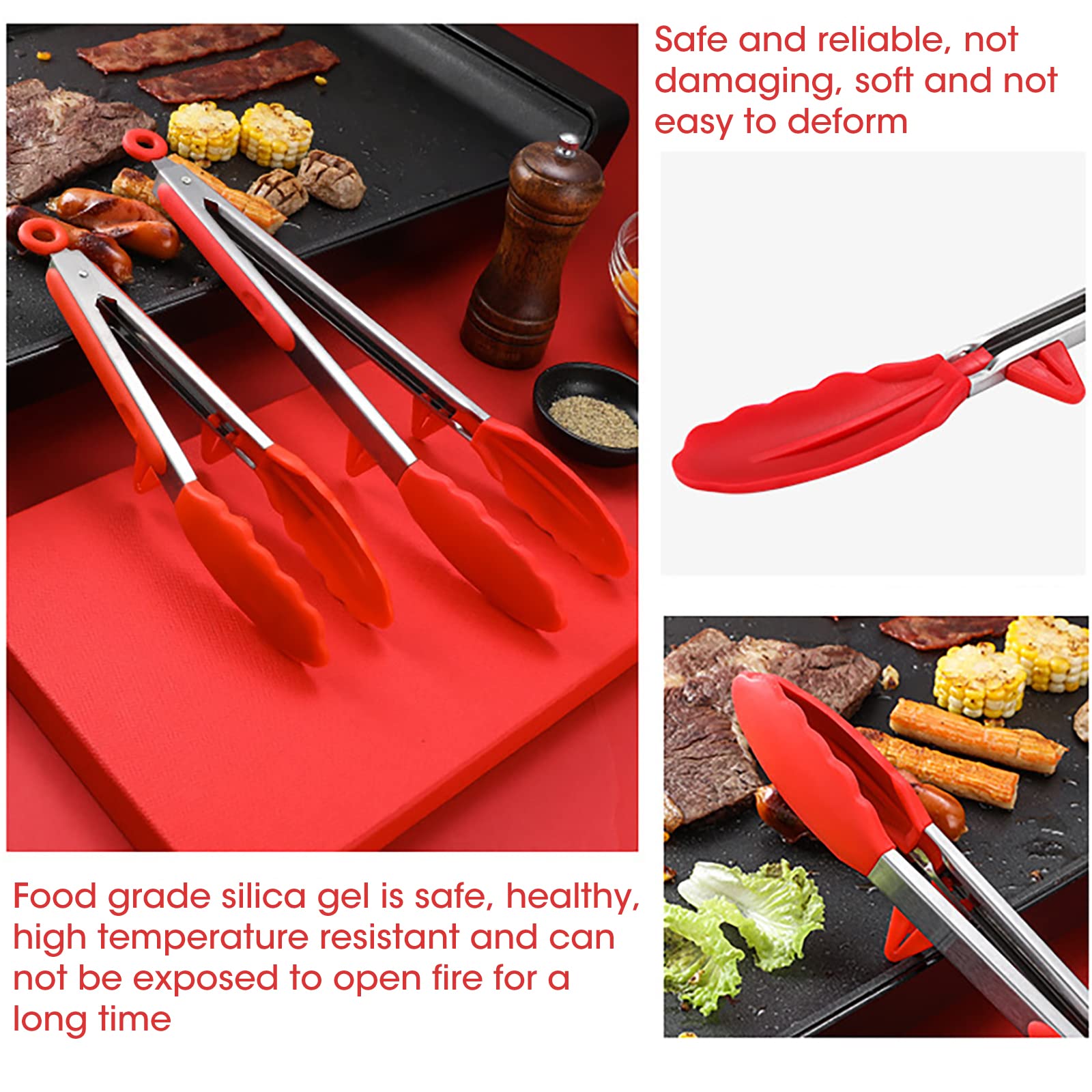 Mekbok Kitchen Tongs with Silicone Tips and Stands, Cooking Tongs, Bbq Grill Tongs, Set of 3