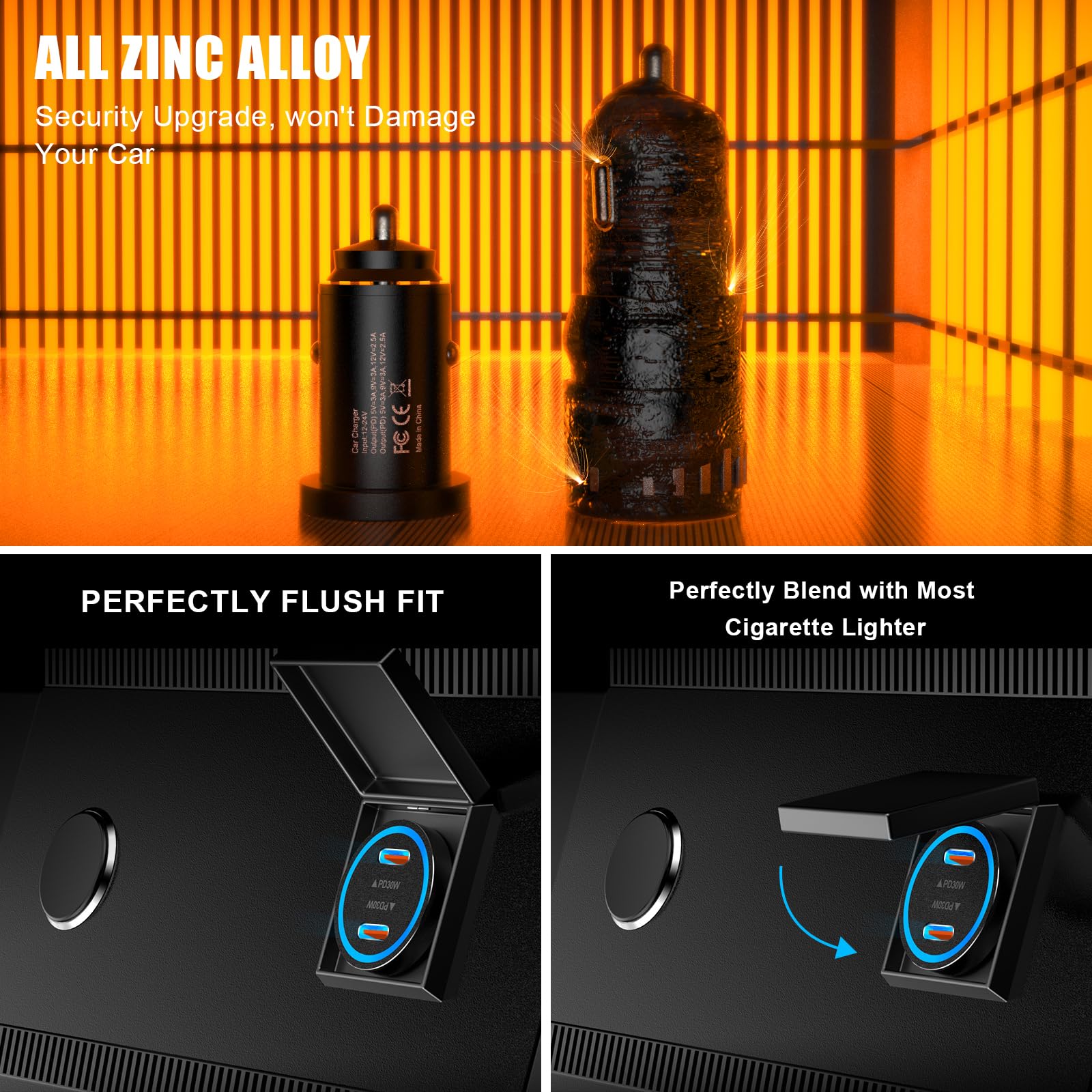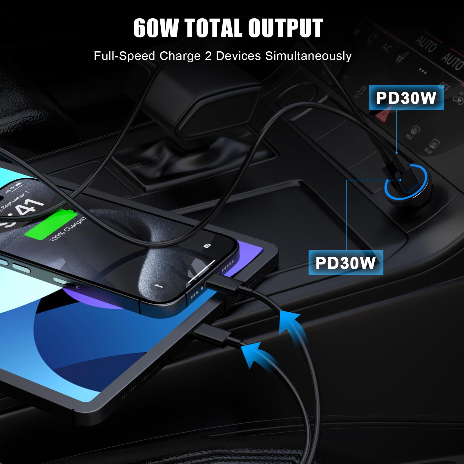 [MFi Certified] iPhone 15 Fast Car Charger, Mini 60W All Metal Dual USB C Car Charger Fast Charging Adapter & 2 Pack USB C to USB C Cord for iPhone 15/15 Plus/15 Pro/15 Pro Max/iPad Pro/Air/Mini