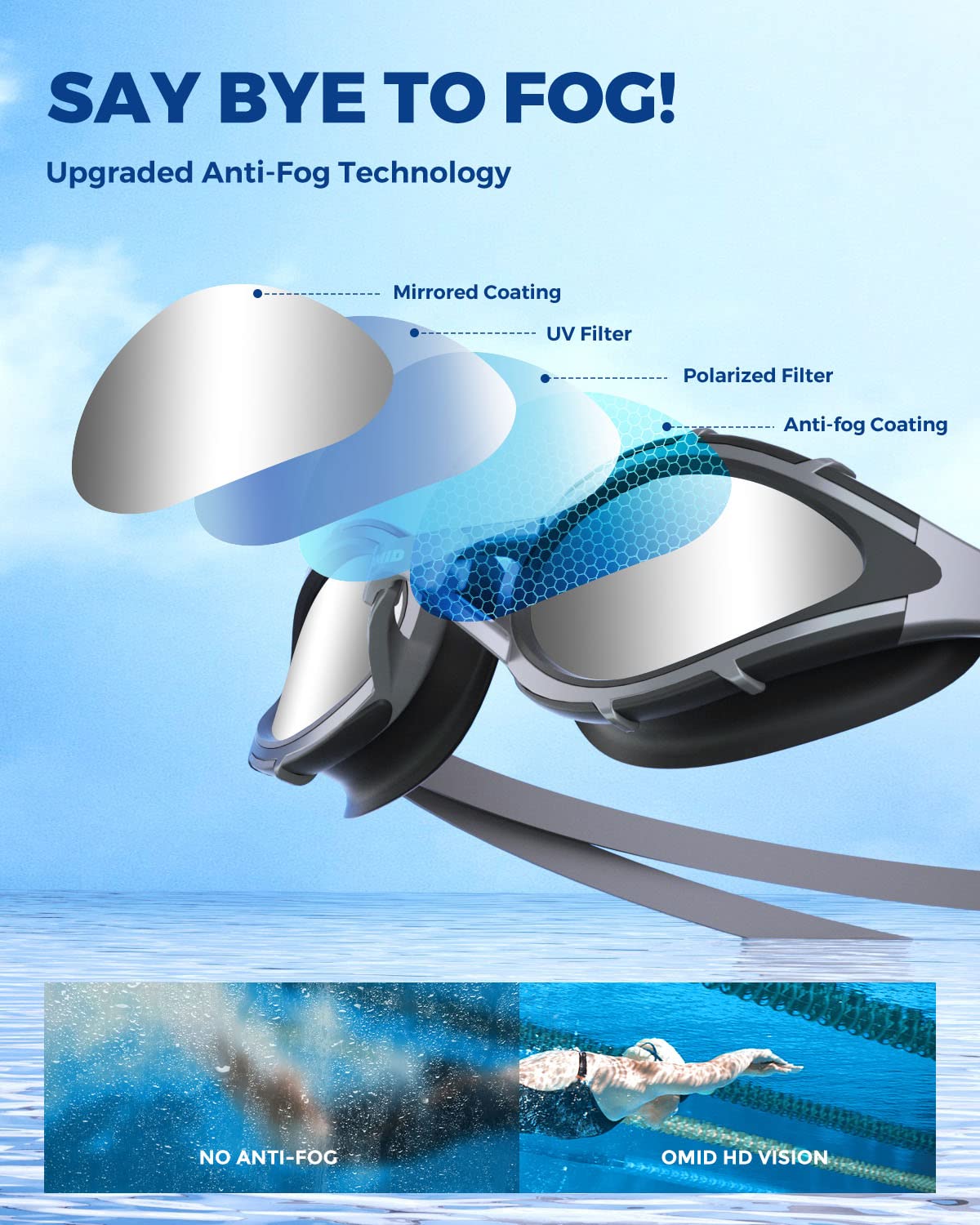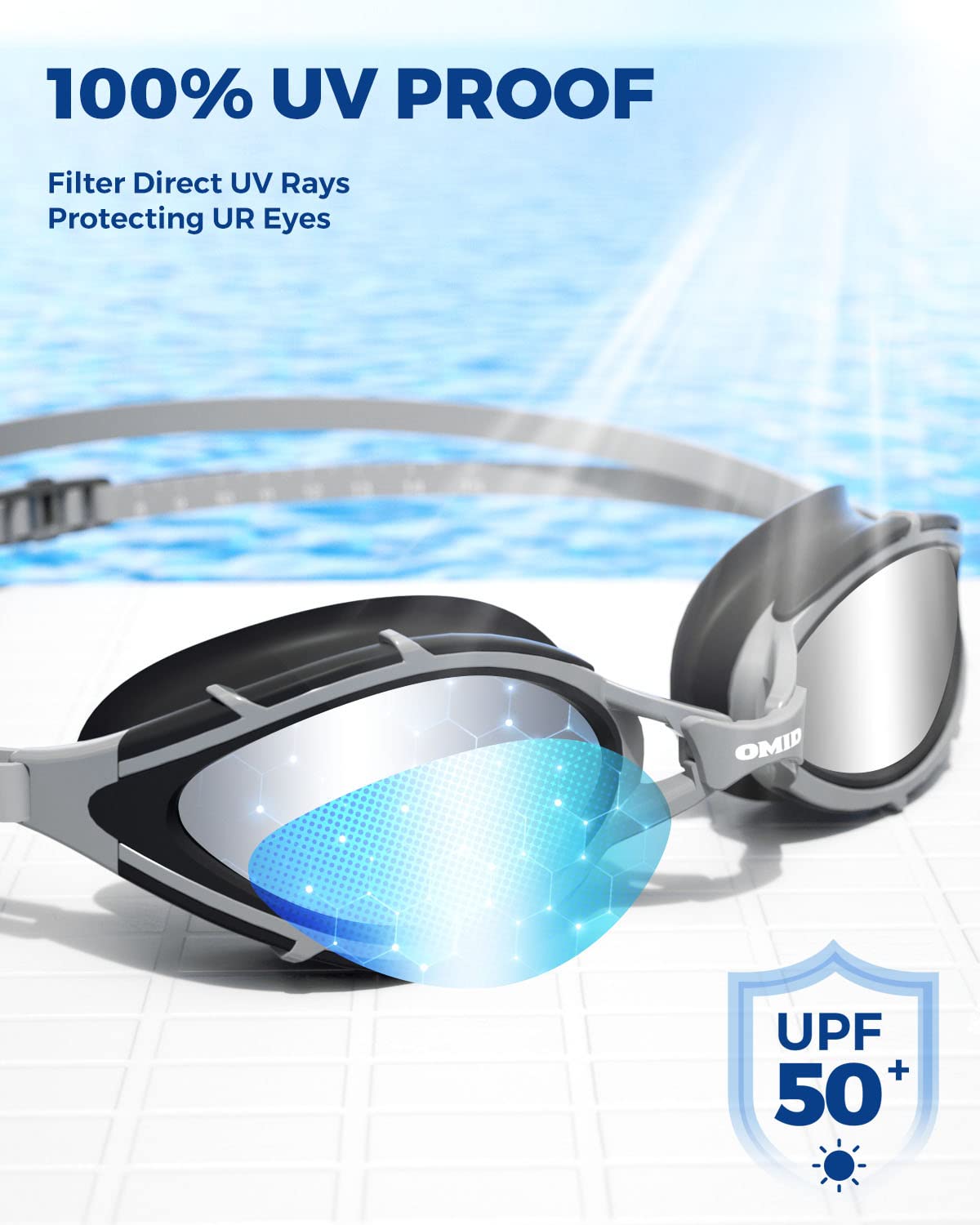 OMID Swimming Goggles, Polarized Swim Goggles, Anti-Fog No Leaking Swim Goggles with UV Protection for Men Women Adult