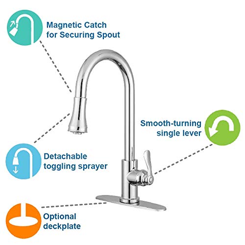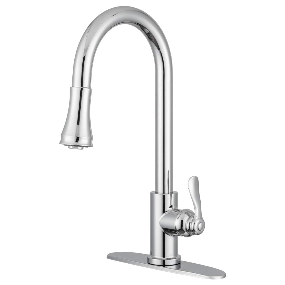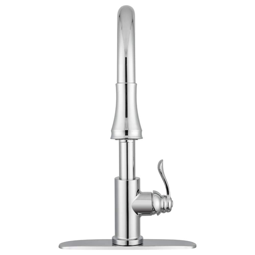 Pacific Bay Vicenza Single-Handle Pull-Down Sprayer Kitchen Sink Faucet - Spot-Resistant - Optional Deck Plate Included (Chrome Plated) - Latest Model