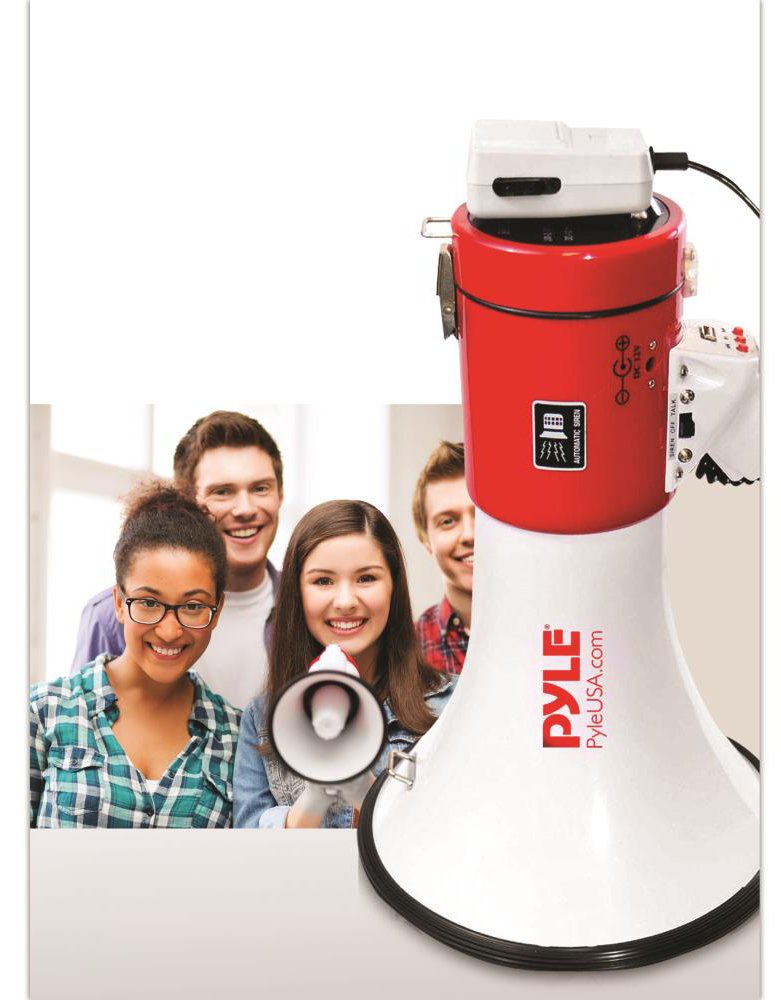 Pyle Megaphone Speaker PA Bullhorn - with Built-in Siren 50 Watts Adjustable Volume Control & Record Function - Ideal for Football, Baseball, Cheerleading Fans, Coaches or for Safety Drills PMP58U