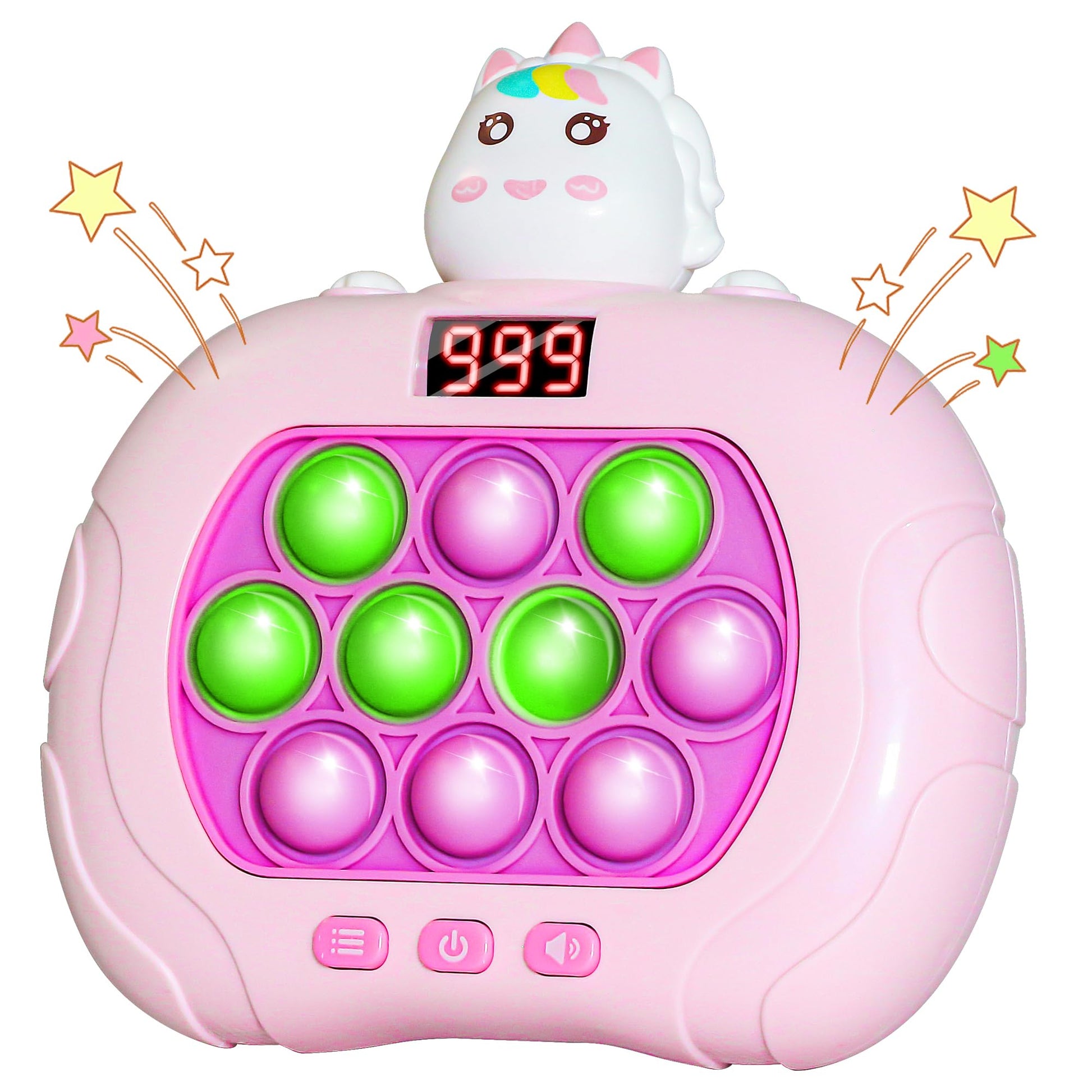 Quick Push Bubble Game, Popping Game Light up Pop Fidget Toy for Kids Teens Adults, Bunny Handheld Fast Push Pop Game for Kids 6-12 Years Old Birthday Gift for Boys & Girls (LED Pink Uni/Corn)