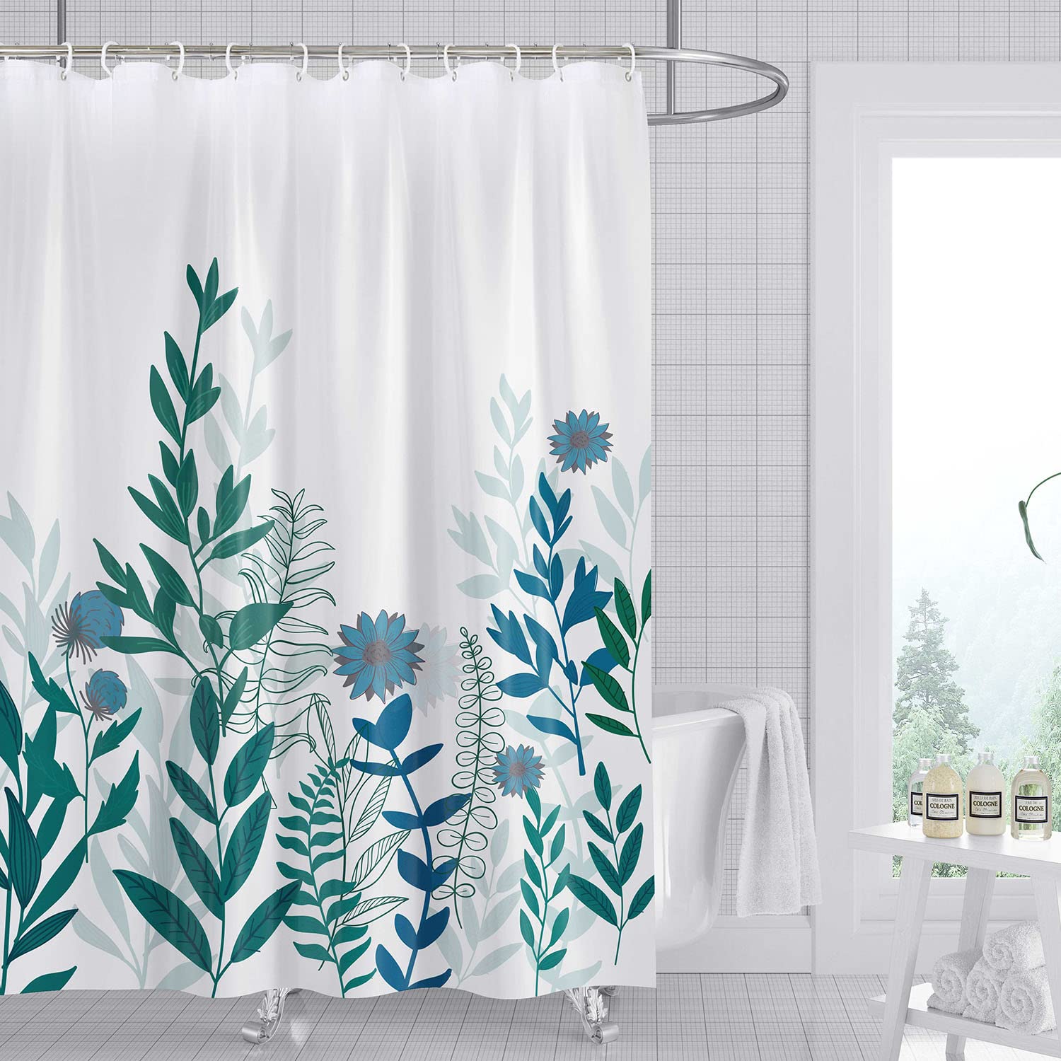 ROCK CLOUD Floral Leaves Shower Curtain Plant Waterproof Flower Fabric Bathroom Curtains Set with 12 Hooks Decorative Botanical Leaf Pattern Machine Washable 72" X 72"