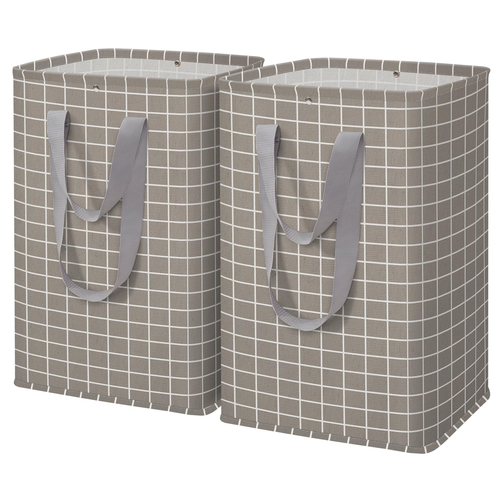 STORAGE MANIAC 2 Pack Large Laundry Hamper Waterproof Freestanding Collapsible Laundry Hamper, Tall Clothes Hamper Tall Laundry Baskets Laundry Bag with Easy Carry Extended Handles, 75L Square Grid