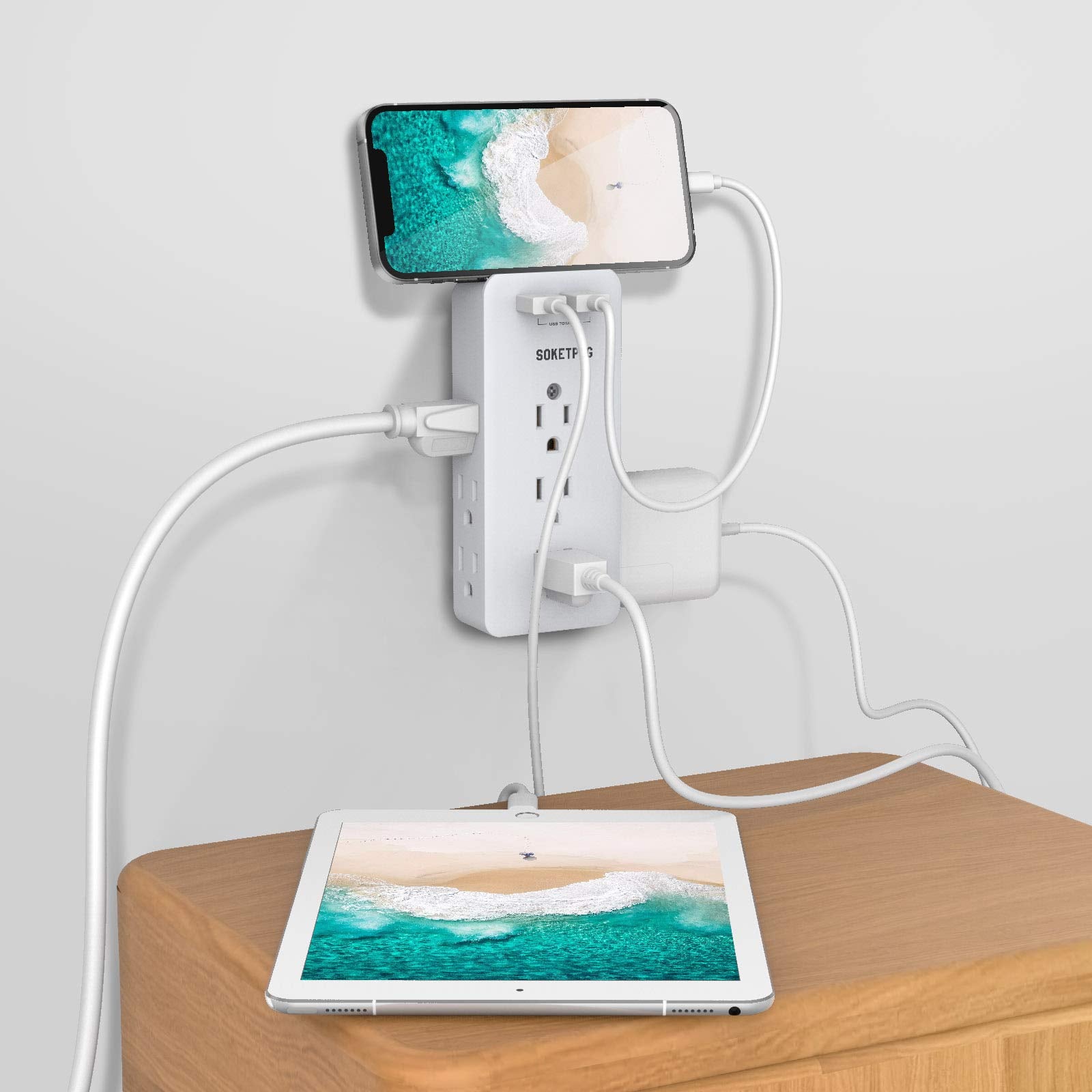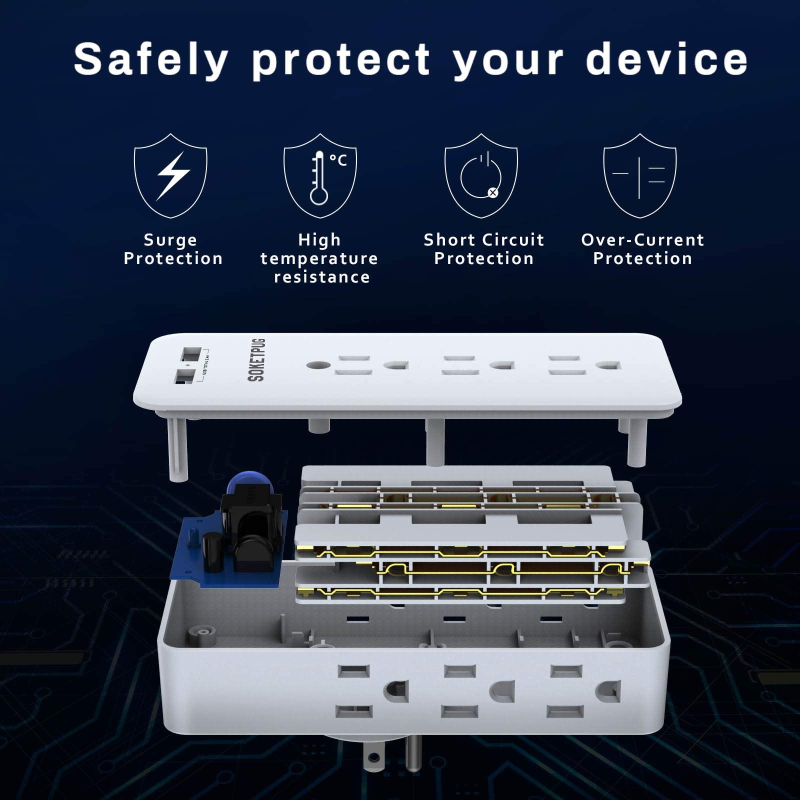 Surge Protector Outlet Extender, USB Wall Charger, SOKETPUG Multi Plug Outlet with 2 USB Charging Ports(Smart 2.4A Total), 9 AC Outlet Splitter Mountable, 3 Sided Plug Extender, Dorm Room Essentials