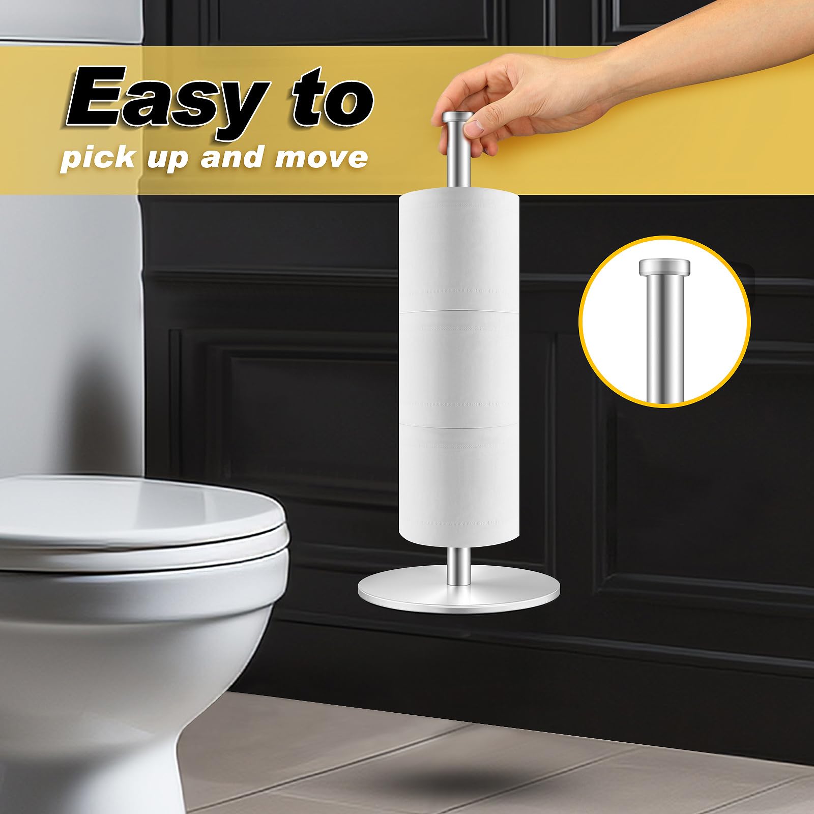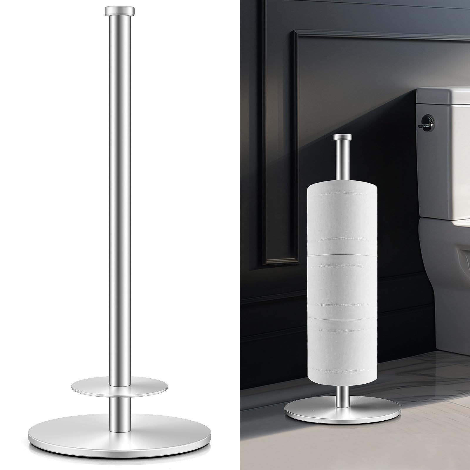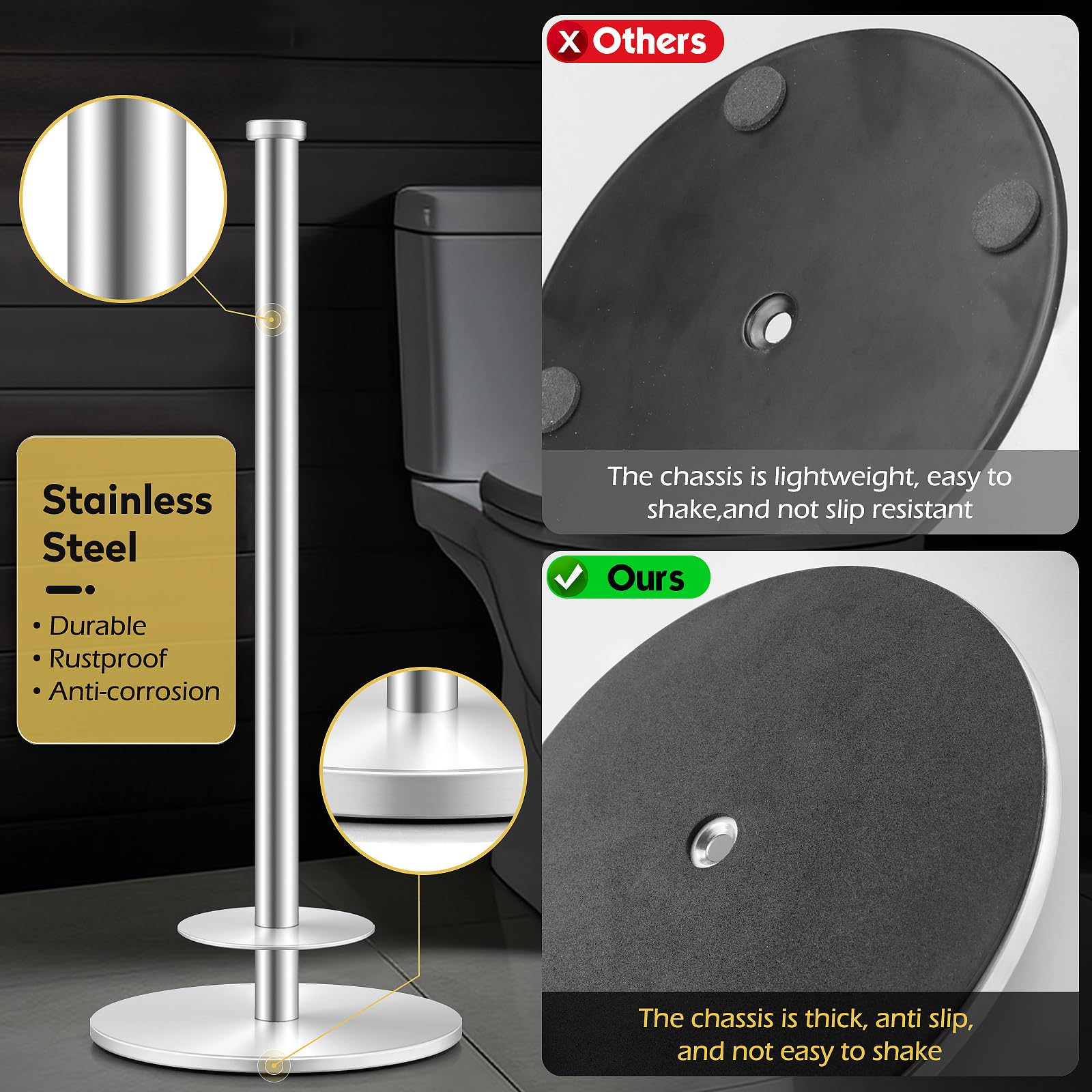 Toilet Paper Holder, Stainless Steel Bathroom Toilet Paper Holder Stand, Space-Saving Toilet Paper Roll Holder, Free Standing Toilet Paper Holder with Non-Slip Stable Base (Silver)