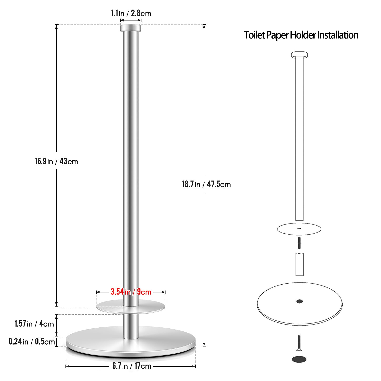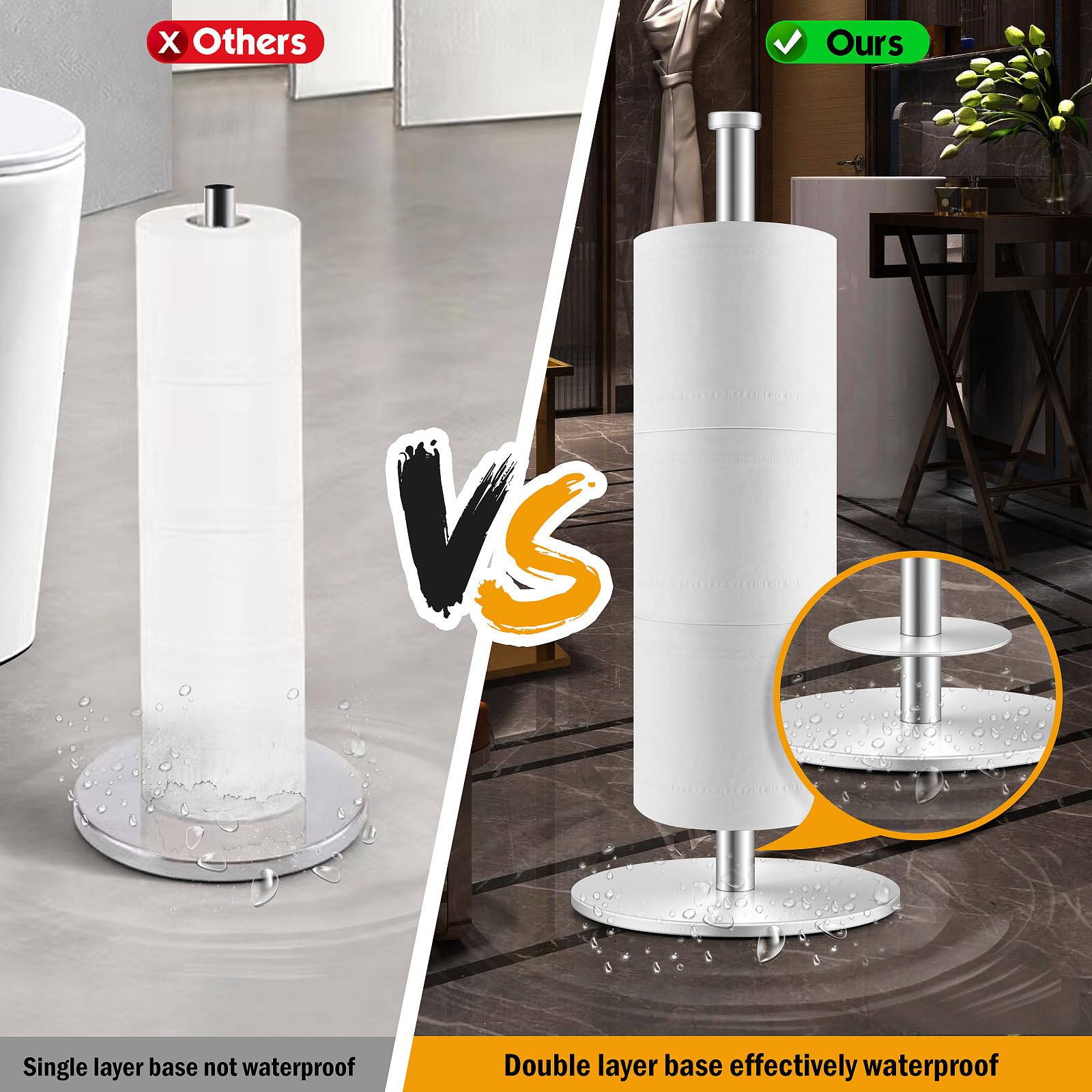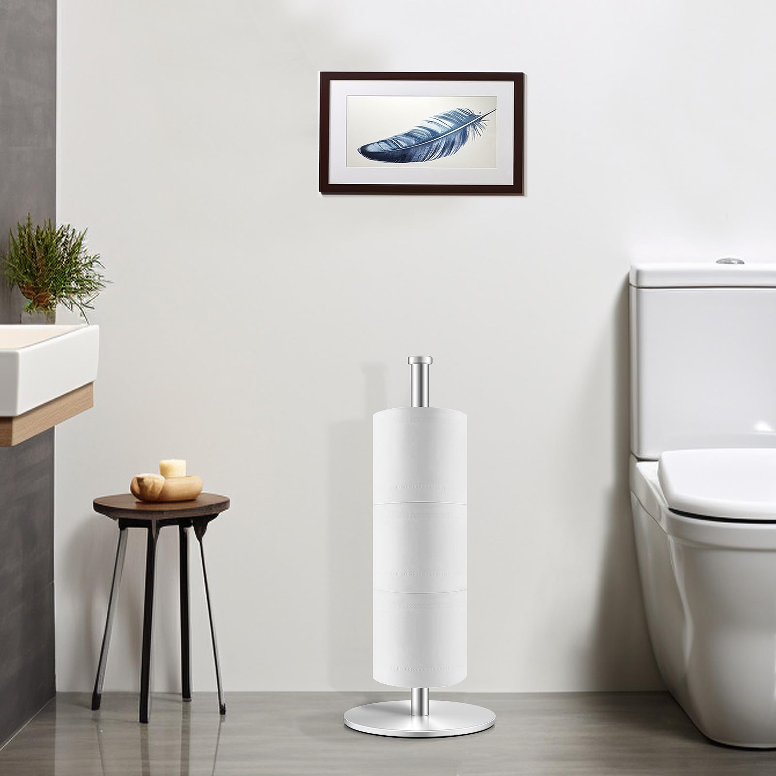 Toilet Paper Holder, Stainless Steel Bathroom Toilet Paper Holder Stand, Space-Saving Toilet Paper Roll Holder, Free Standing Toilet Paper Holder with Non-Slip Stable Base (Silver)