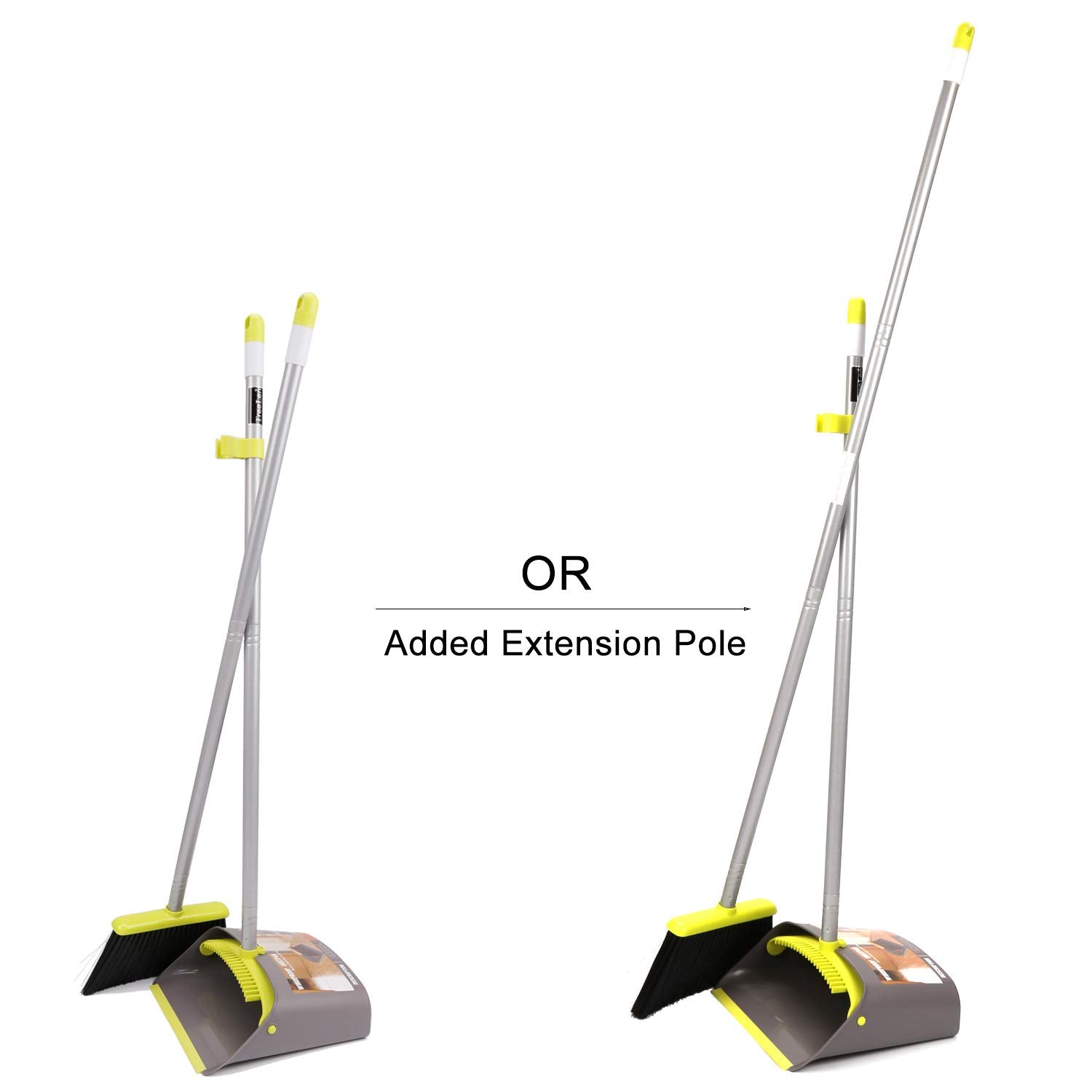 TreeLen Broom and Dustpan Set, TreeLen Broom with Dust Pan with Long Handle Combo Set for Office and Home Standing Upright Sweep Use with Lobby Broom