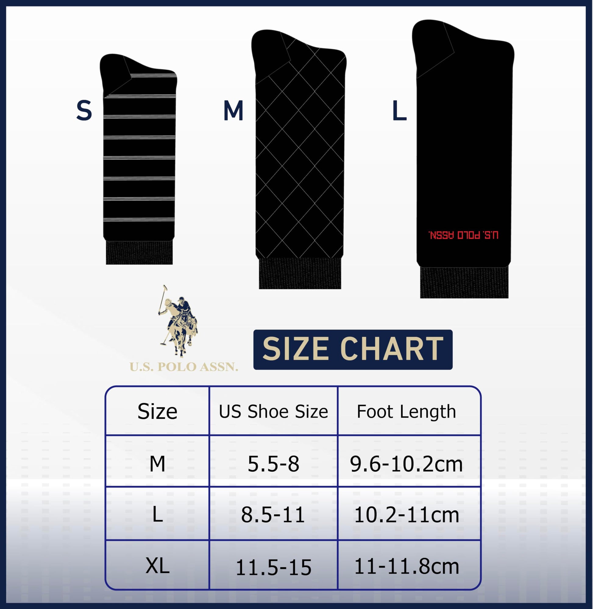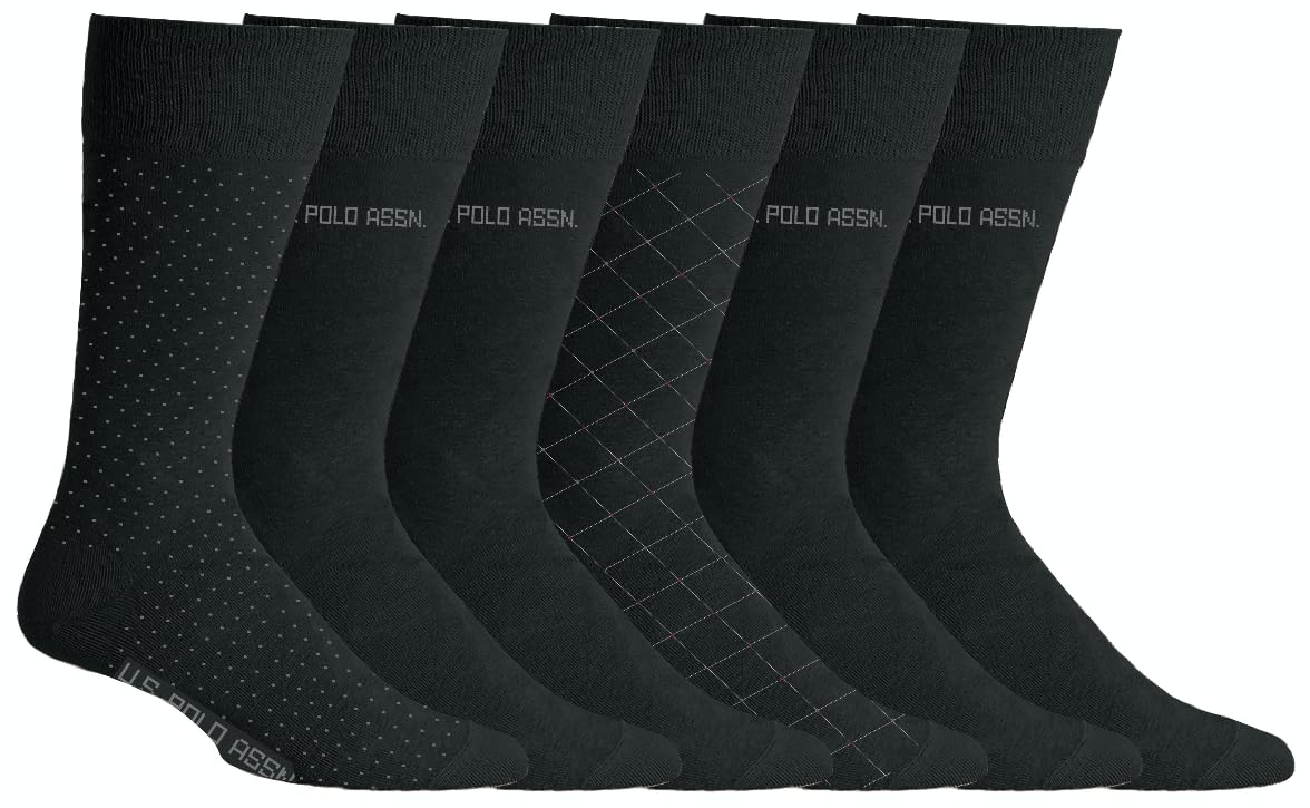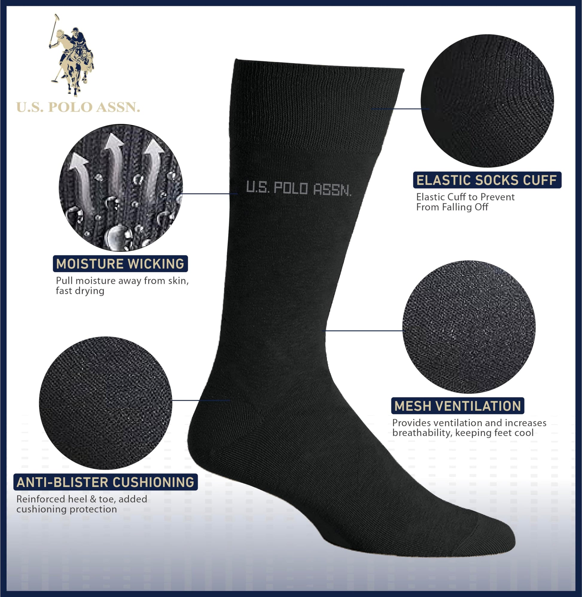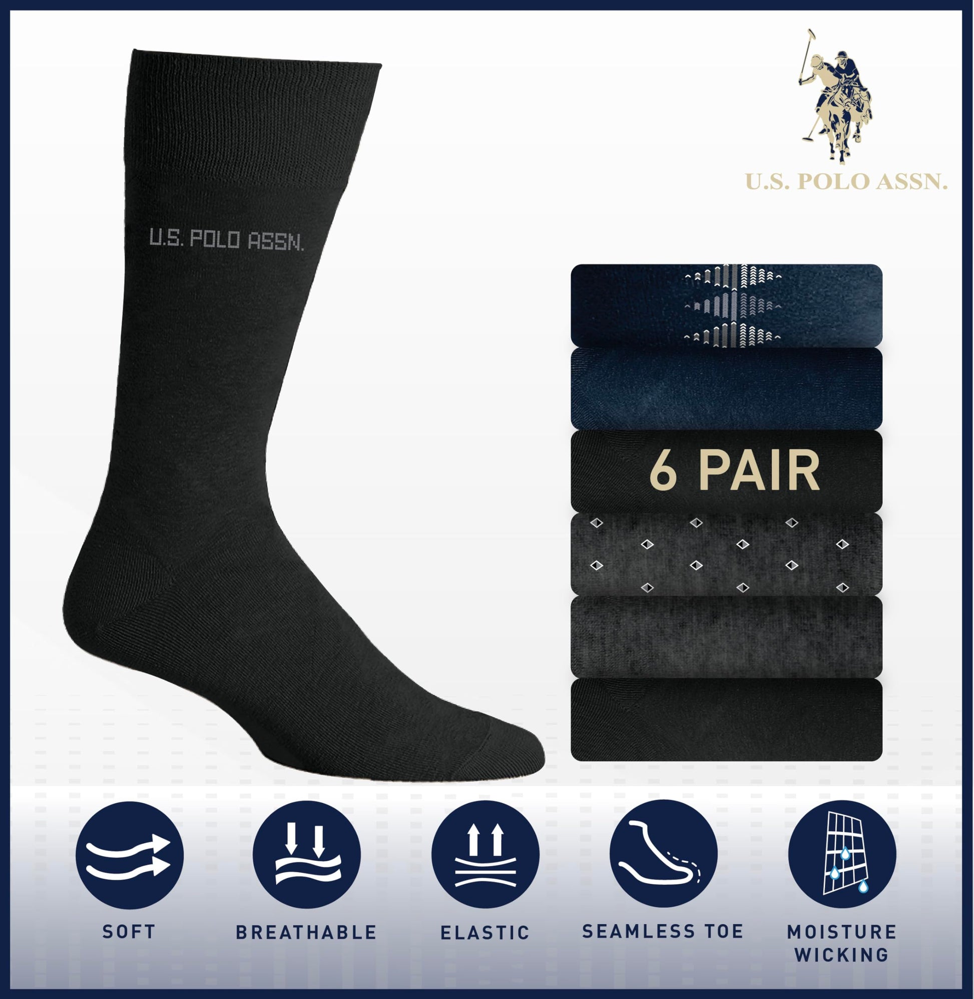 U.S. Polo Assn. 6 Pair Men's Crew Length Soft Dress Socks - Breathable & Moisture Control Socks for Indoor or Outdoor Wear, BLK 6353 (Shoe Size 6-12)