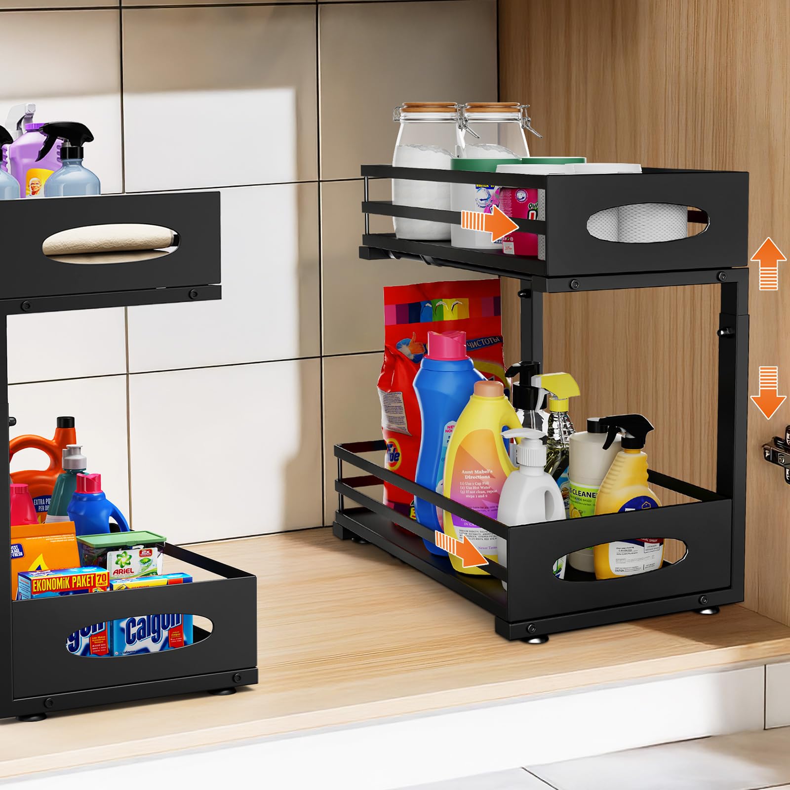 2 Tier Pull Out Drawer Cabinet Organizer, 2 Pack