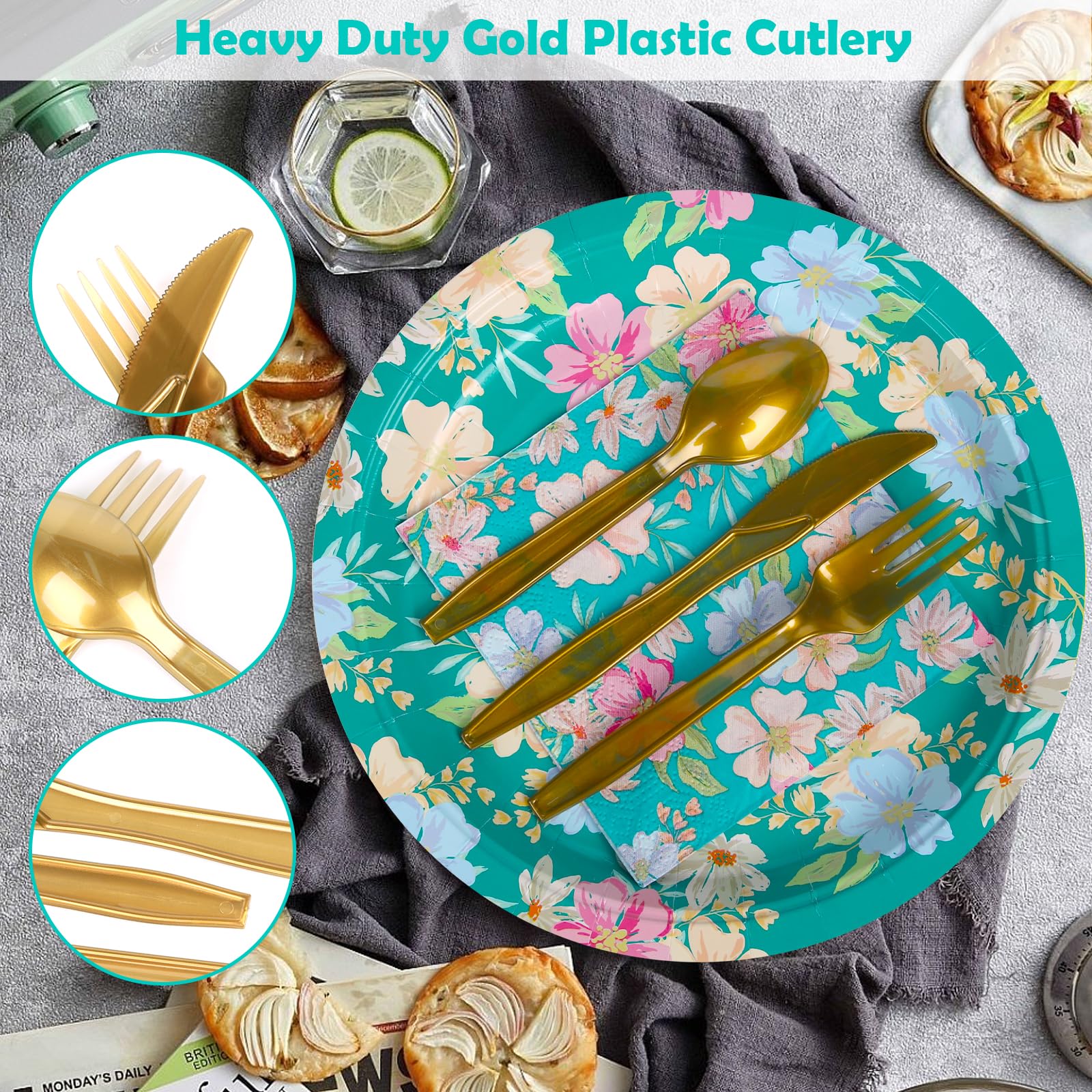 Heavy-Duty Gold Disposable Plates & Cutlery