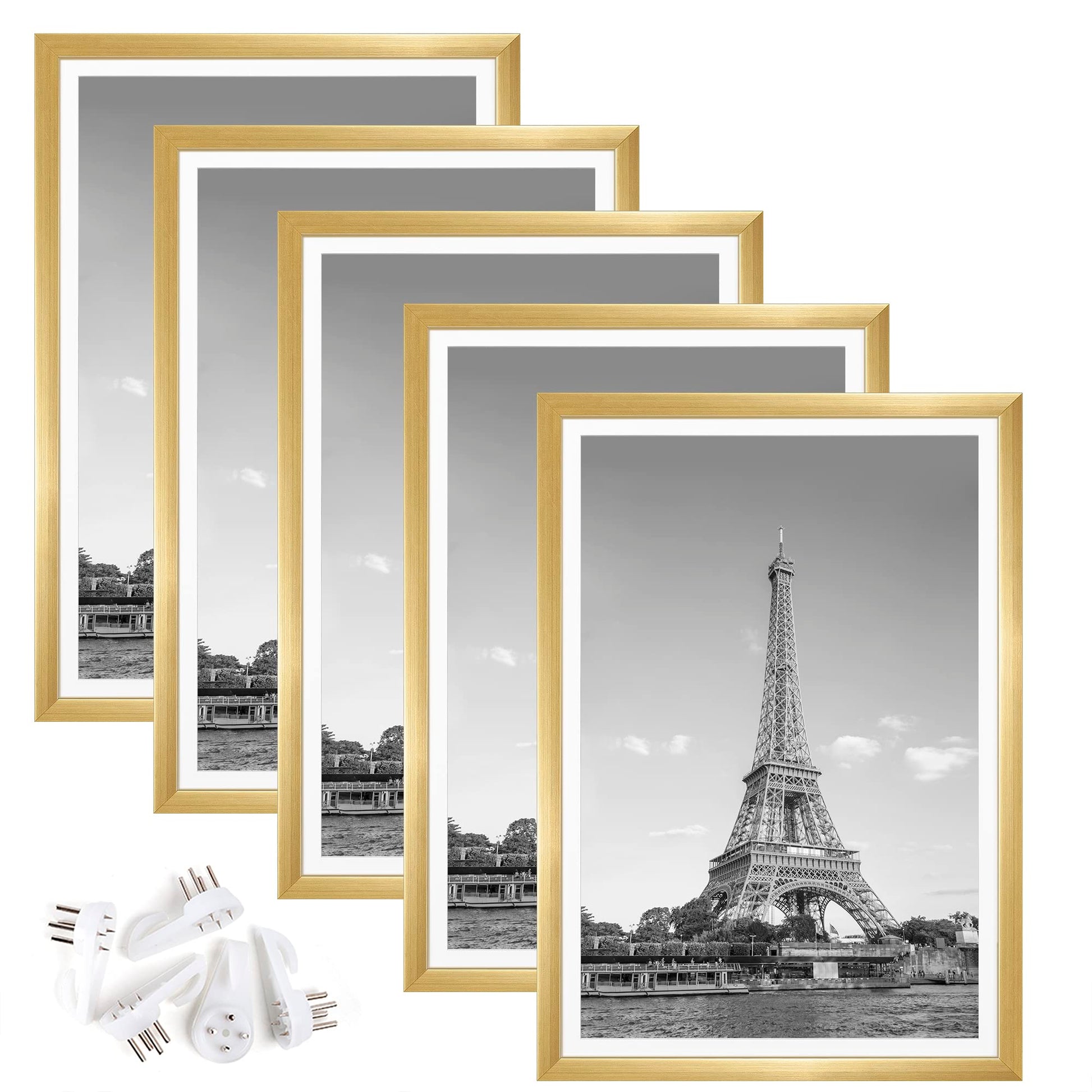 upsimples 13x19 Picture Frame Set of 5, Display Pictures 11x17 with Mat or 13x19 Without Mat, Wall Gallery Photo Frames, Gold