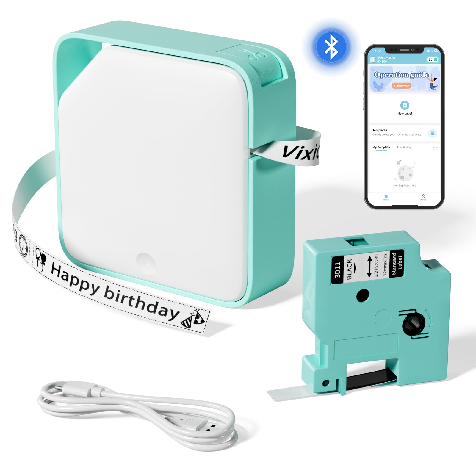 Vixic D1600 Label Maker Machine with Tapes, Smart Handheld Bluetooth Label Printer, Mini Portable Labeler with Multiple Templates Font Icon, for 6-12mm 1/4 '-1/2' Tapes, Home School Office,Green