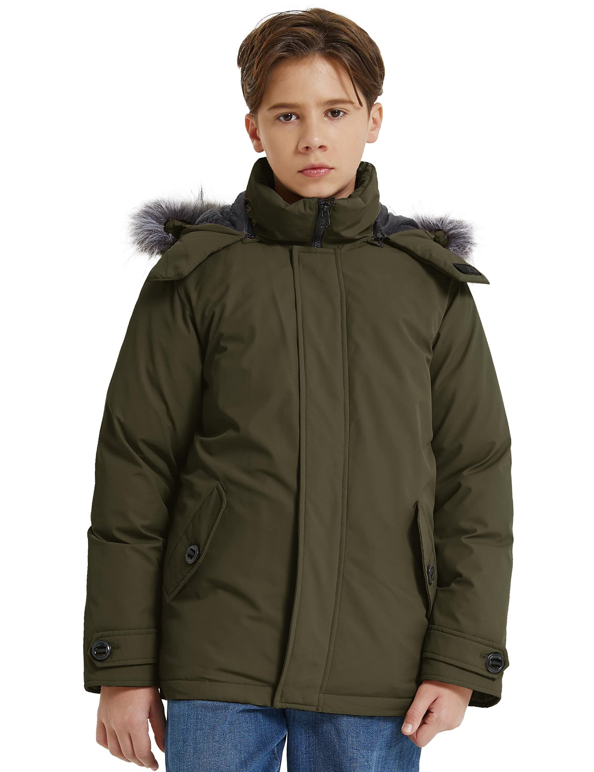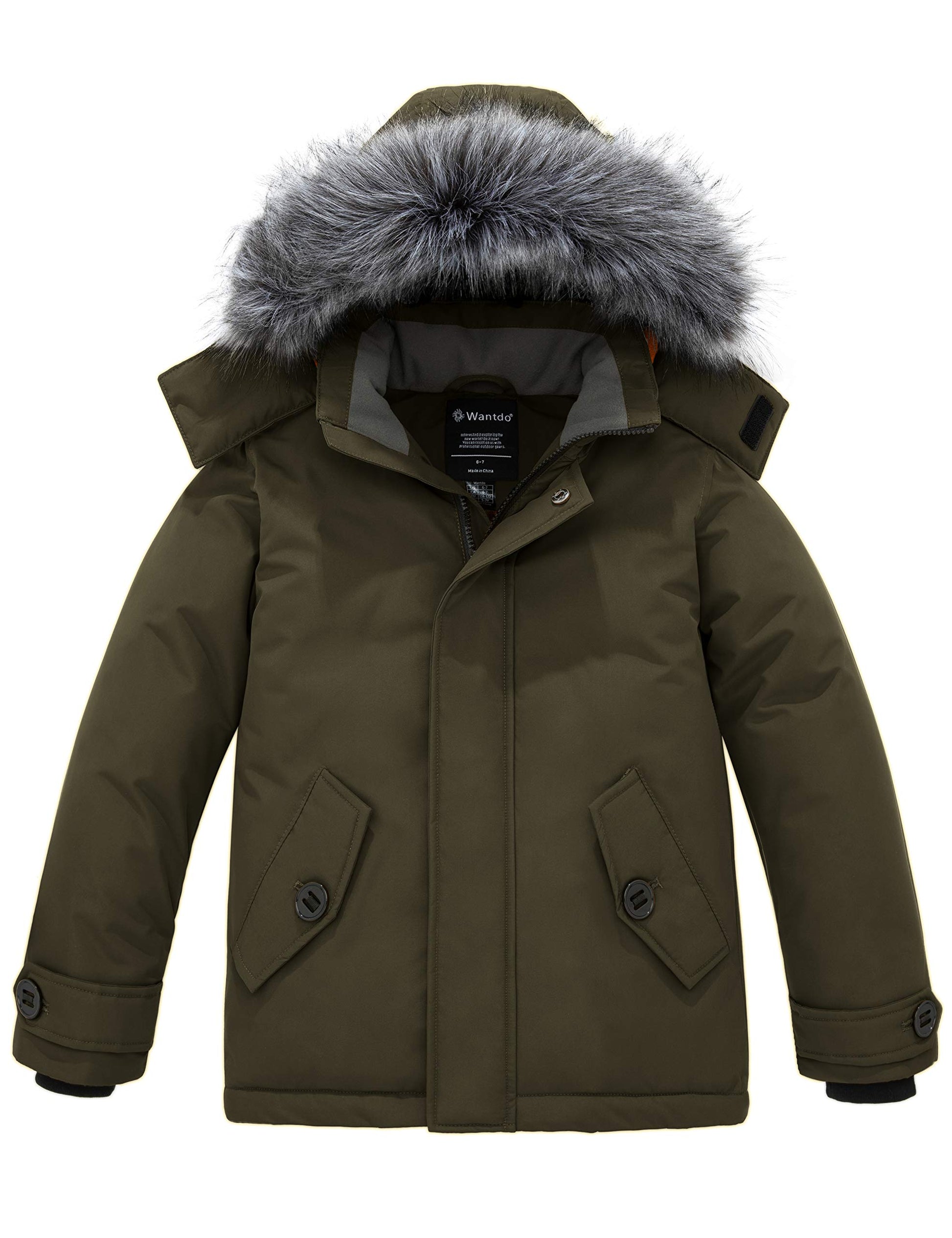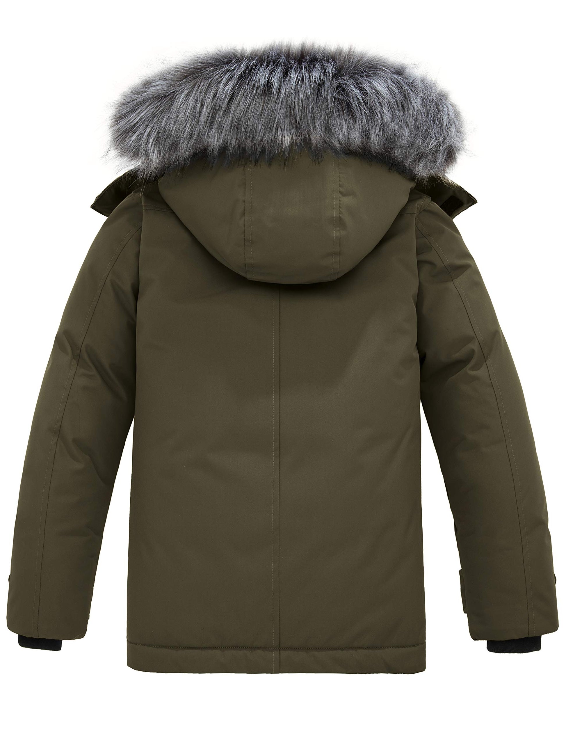 wantdo Boys' Hooded Puffer Jackets Water-Resistant Warm Fleece Winter Coat with Hood Army Green 6-7